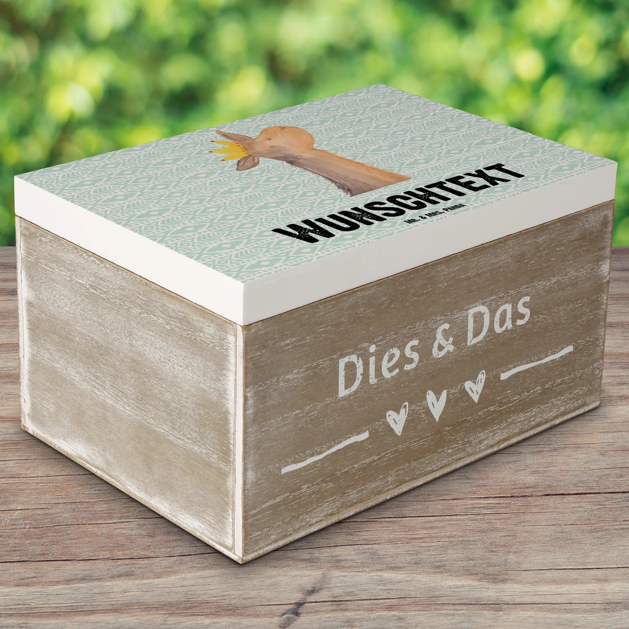 Mach deinen Liebsten eine Freude und verschenke diese einzigartige Holzkiste mit dem Lamakopf König-Motiv aus der Lama-Kollektion von Mr. & Mrs. Panda – das ideale Geschenk für Lama-Fans, besonders zu besonderen Anlässen, die in Erinnerung bleiben sollen.