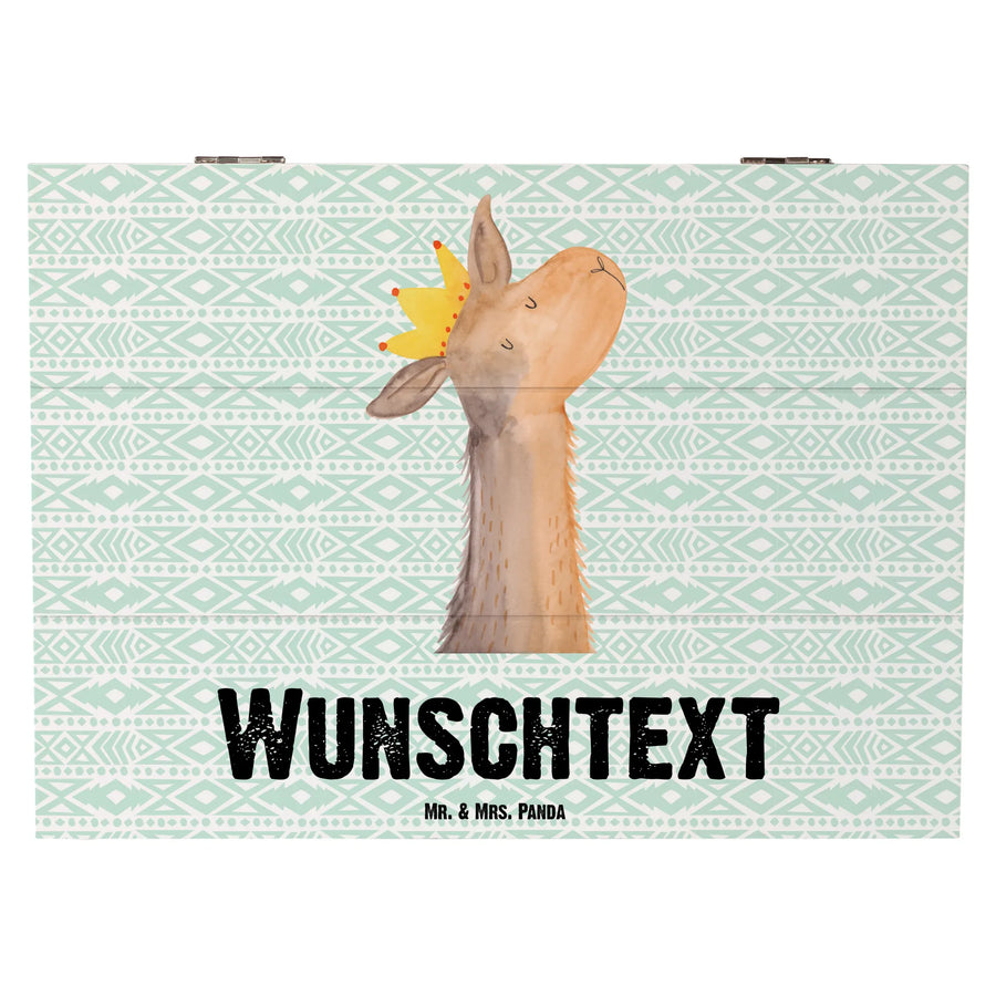 Personalisierte Holzkiste Lamakopf König - 25 x 18 cm - Aztekenblau