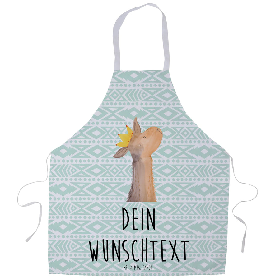 Personalisierte Kochschürze Lamakopf König - Aztekenblau