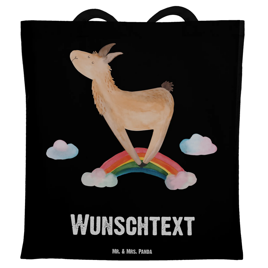 Personalisierte Tragetasche Lama Regenbogen - Schwarz