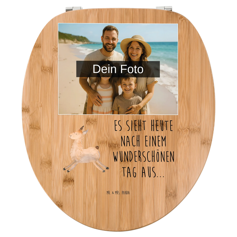 Personalisierter Foto WC Sitz Motiv Lama Springen - Bambus