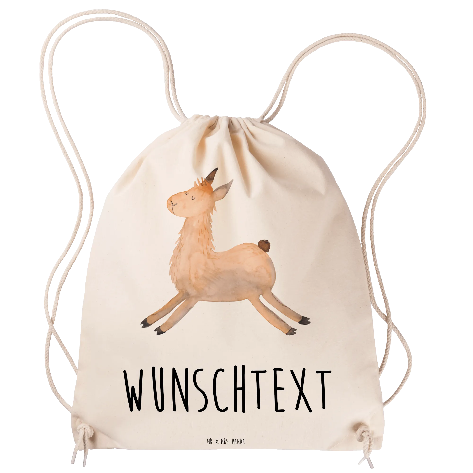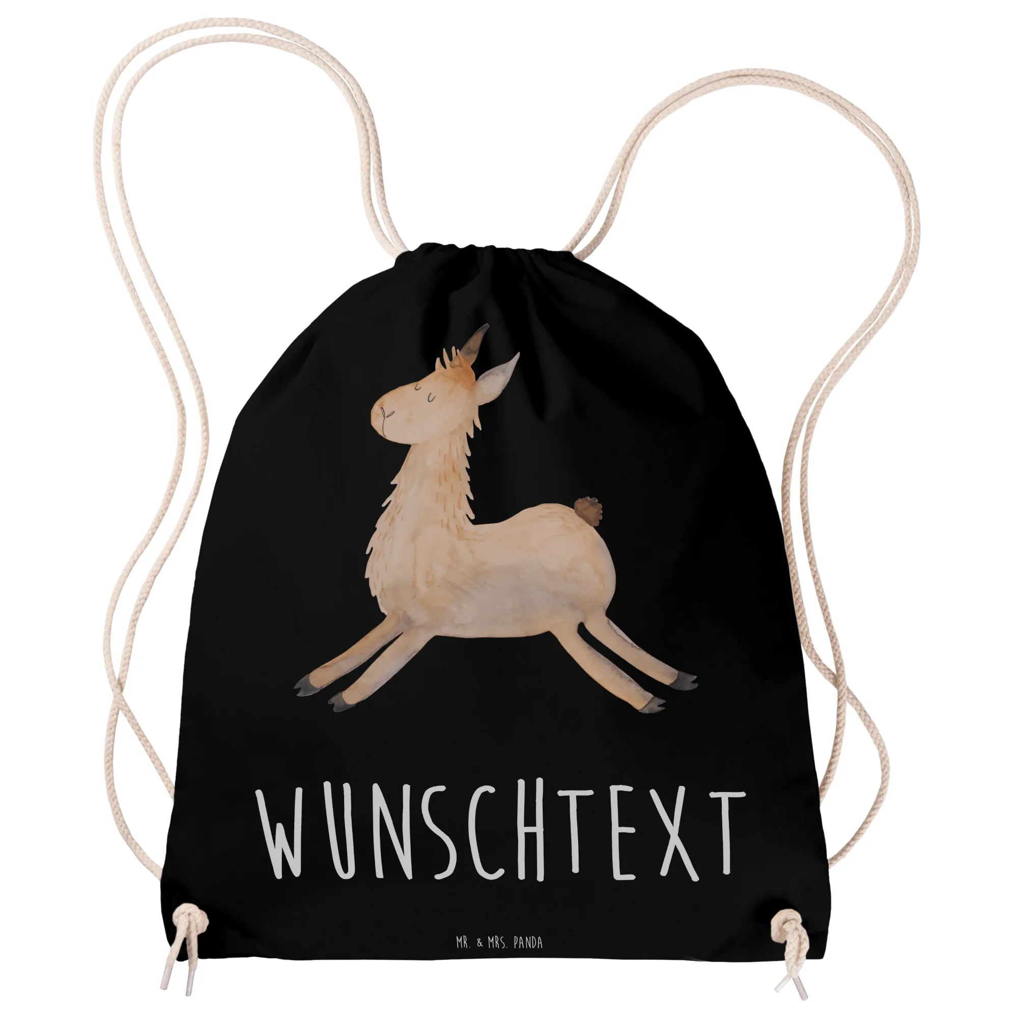 Die Lama - Kollektion von Mr. & Mrs. Panda wurde liebevoll handgezeichnet. Das Motiv „Lama springend“ steht für gute Laune, Neubeginn und pure Coolness. Perfekt als Turnbeutel mit Namen für die Schule, Gymbag mit Wunschtext fürs Training oder als liebevolles Geschenk bei Prüfungen, Liebeskummer, Einschulung oder Abitur.