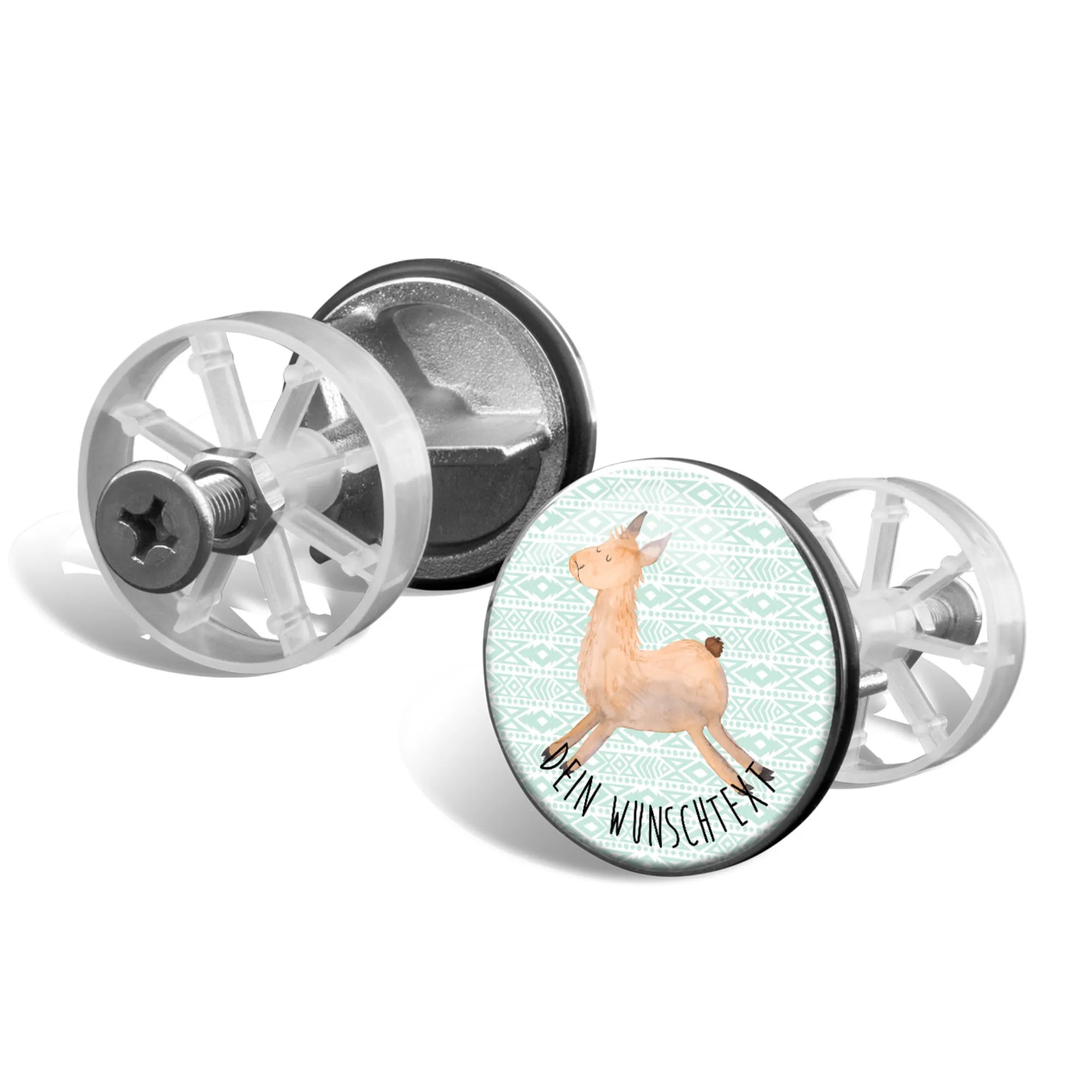 Personalisierter Waschbecken Stöpsel Lama springend - Aztekenblau