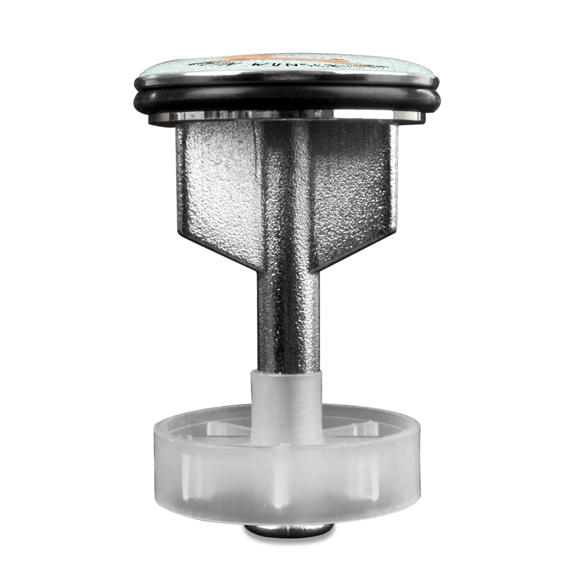 Der verchromte Messing-Stöpsel hat einen Durchmesser von 40 mm und eine Höhe von 72 mm, wodurch er in jedes handelsübliche Waschbecken passt. So bleibt dein Abfluss immer frei, denn zusätzlich verfügt der Stöpsel über ein integriertes Haarfangsieb.
