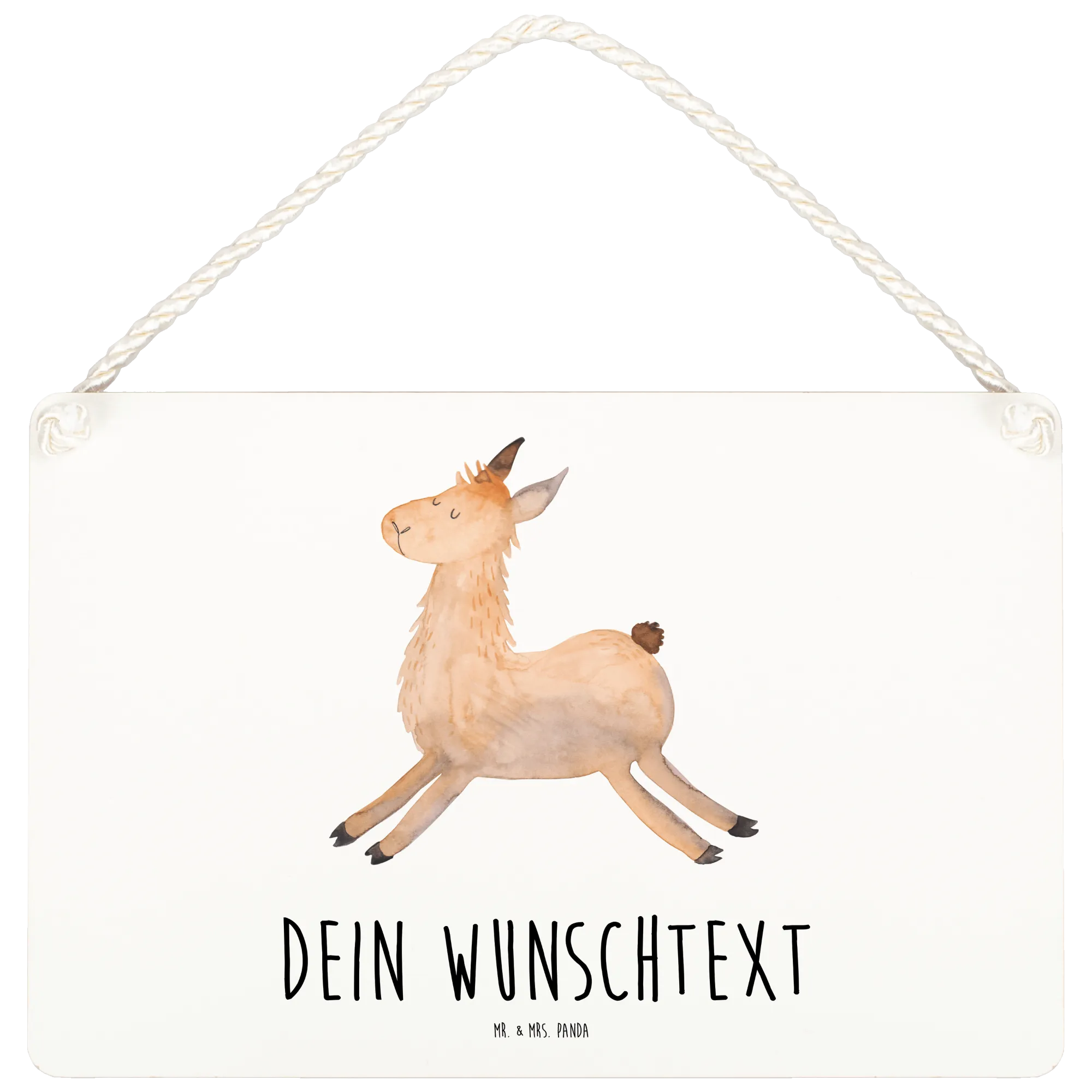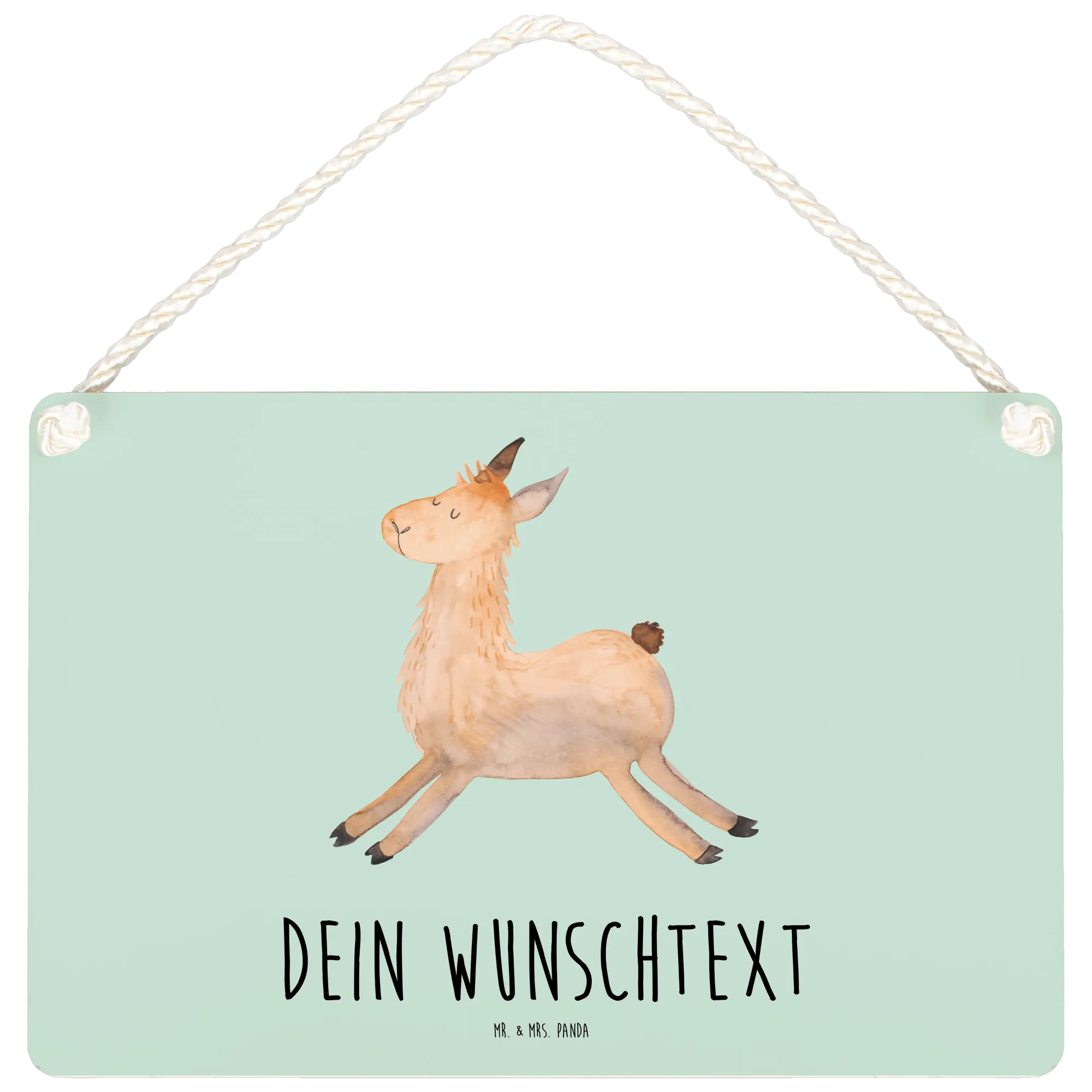 Lass das Glück ins Haus und verschenke das personalisierte Deko Schild "Lama springend" - das perfekte Deko-Schild, um Freude und Optimismus zu verbreiten!
