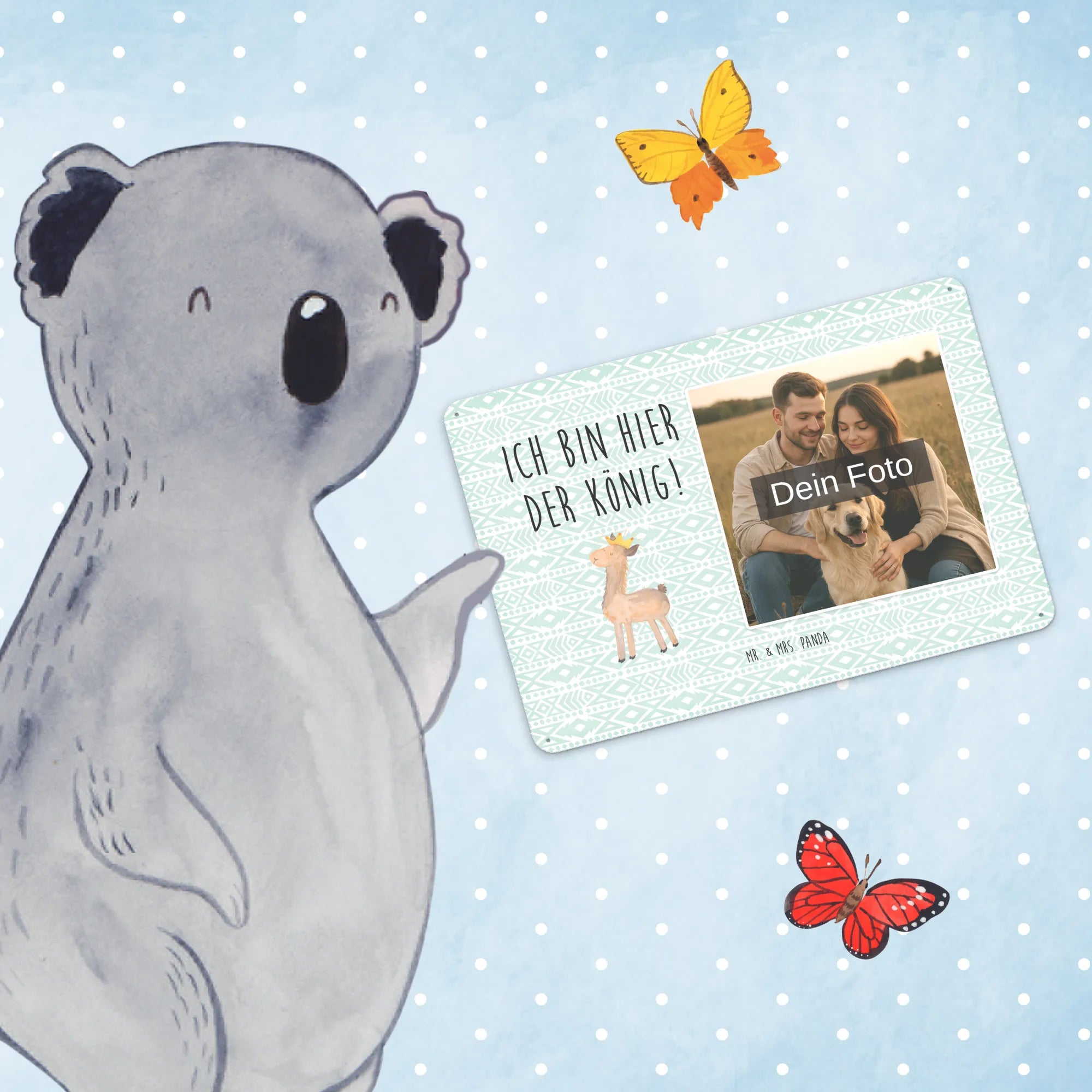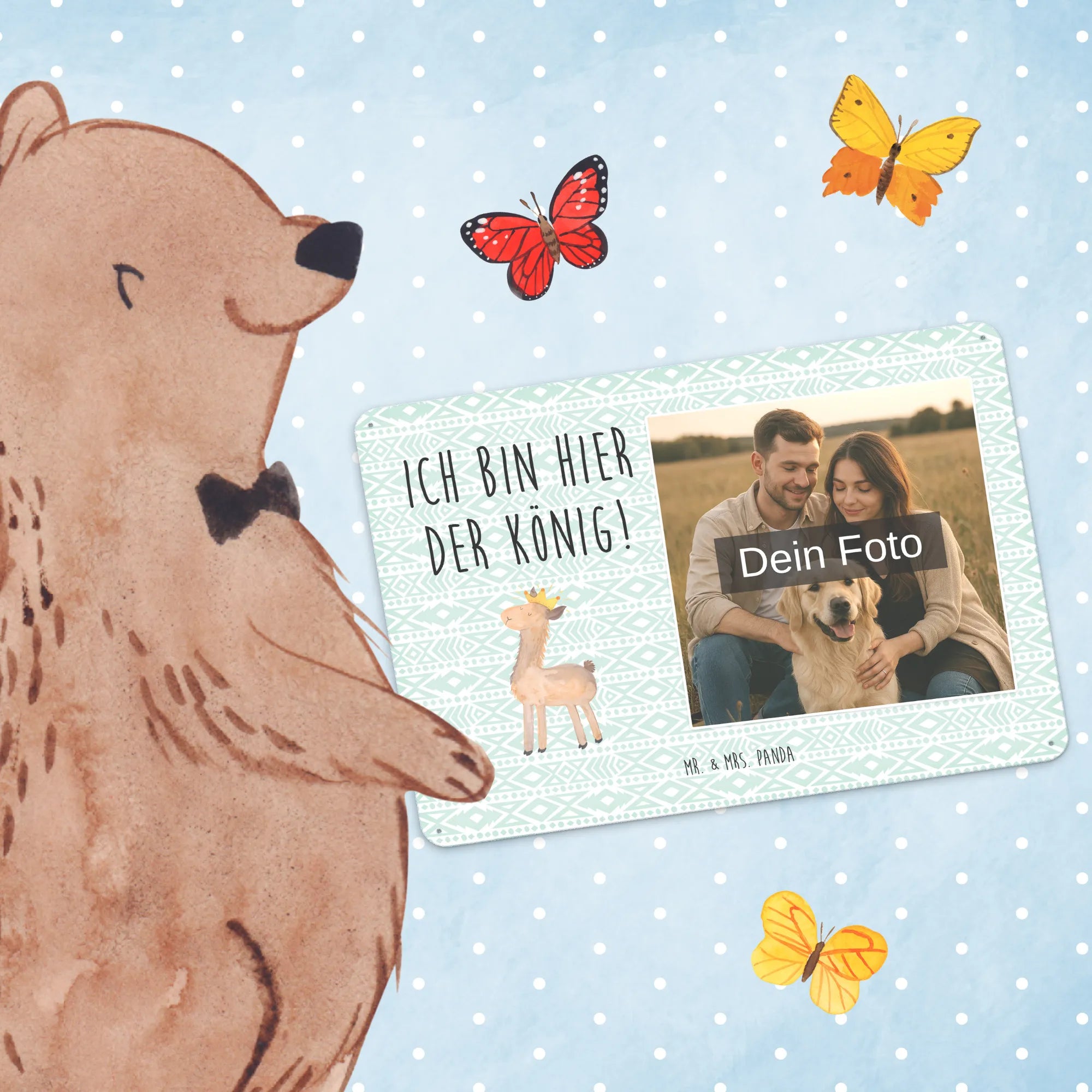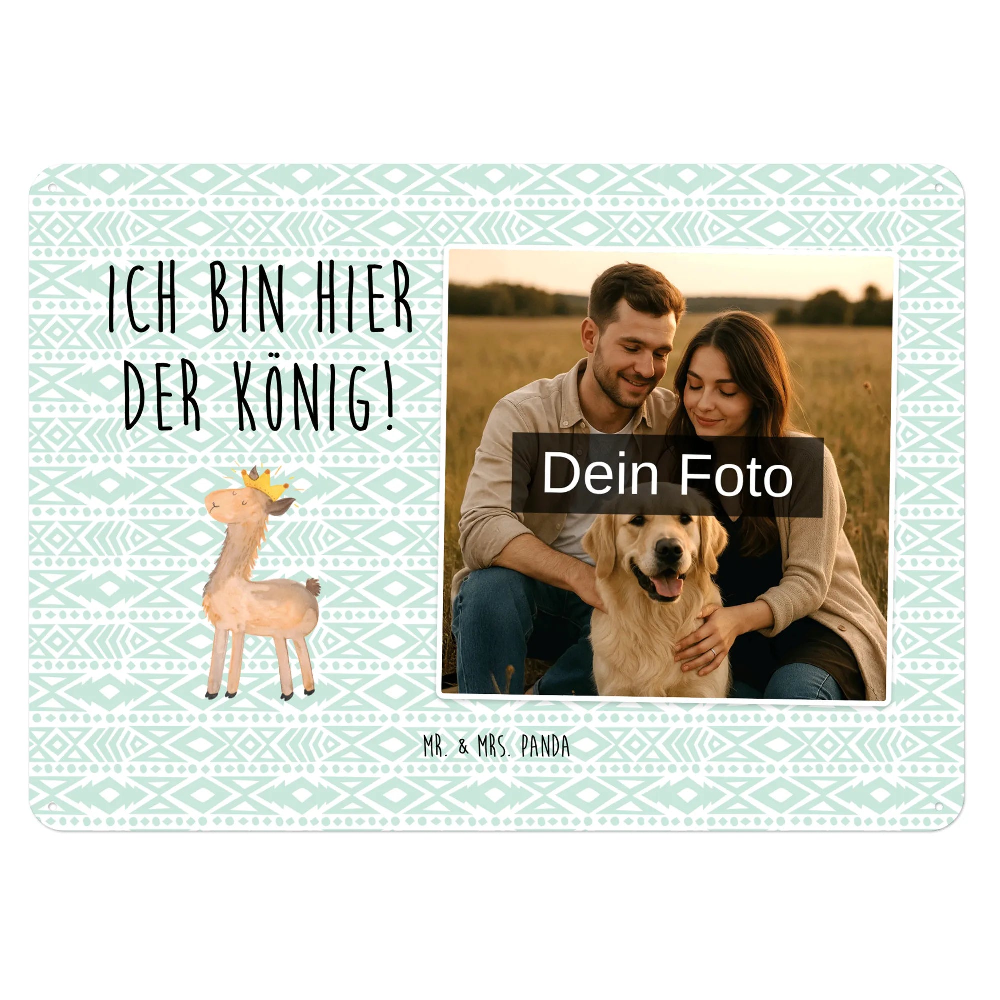 Personalisiertes Foto Blechschild Lama König - DIN A6
