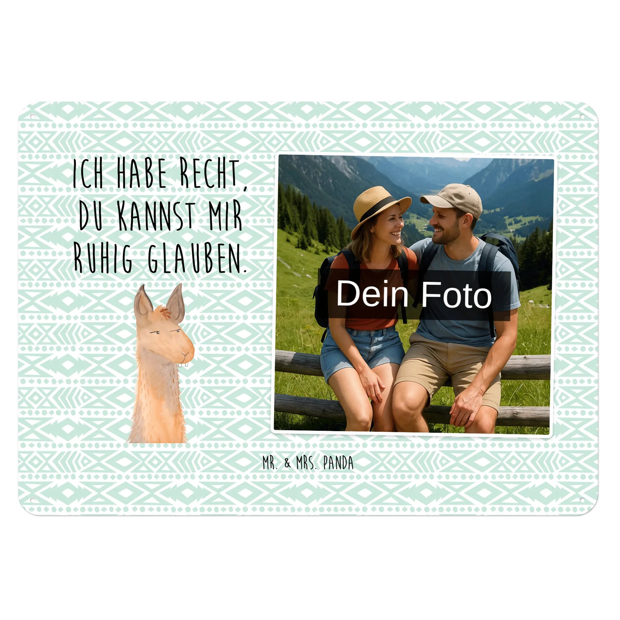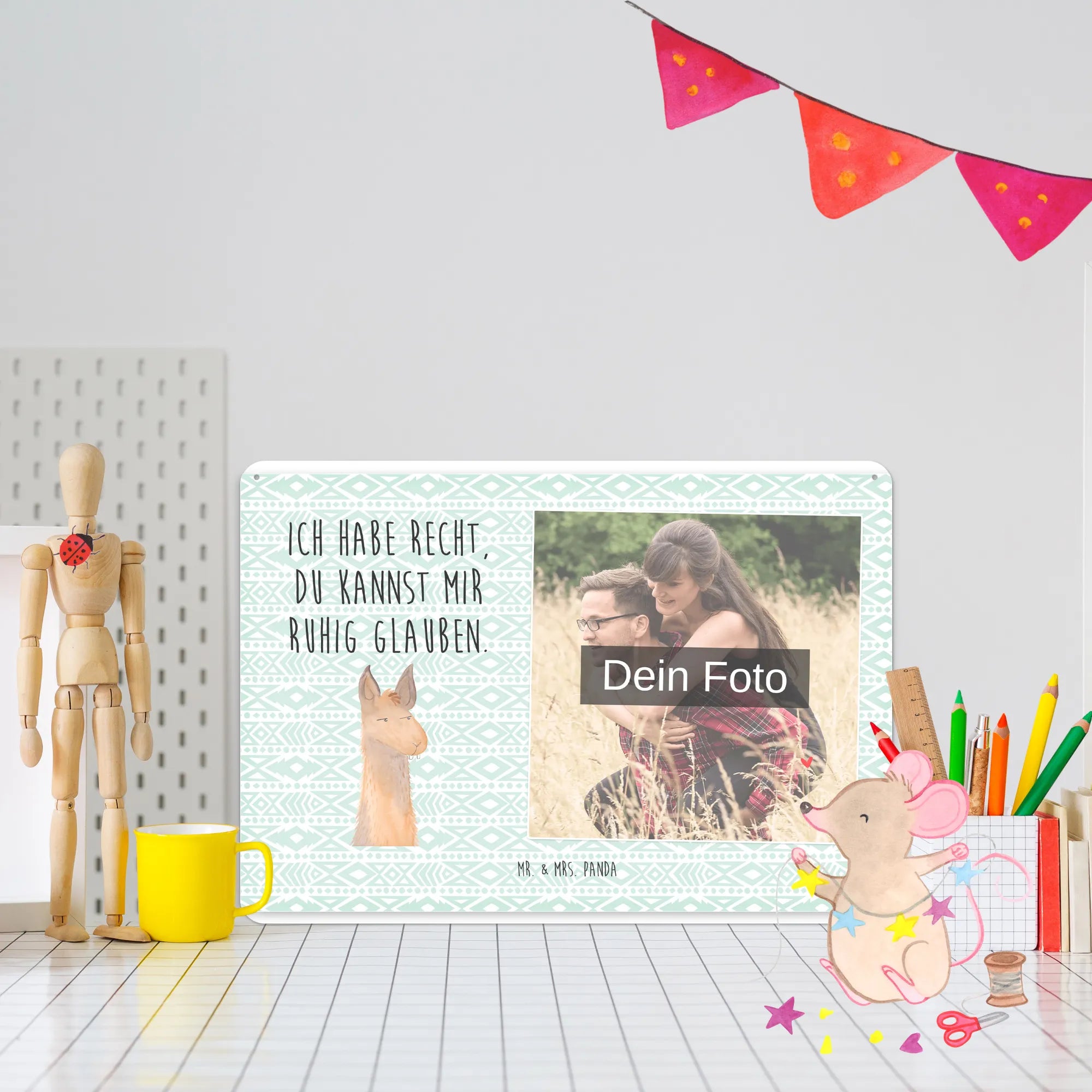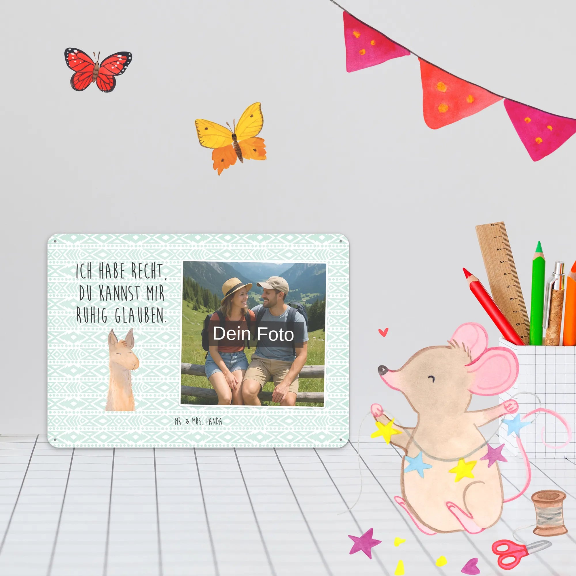 Personalisiertes Foto Blechschild Lamakopf Genervt – Mr. & Mrs. Panda