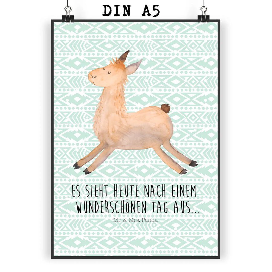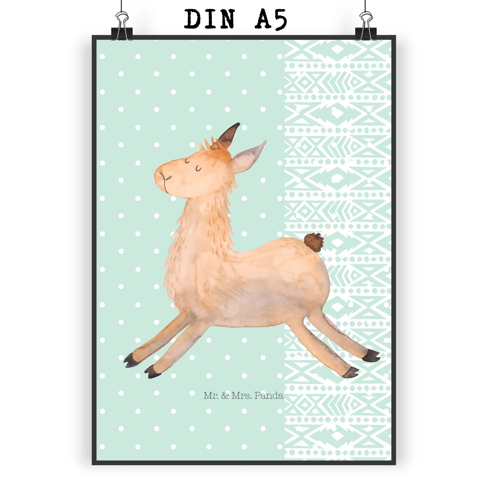 Poster Lama Springen - DIN A0 - mit Spruch - Aztekenblau