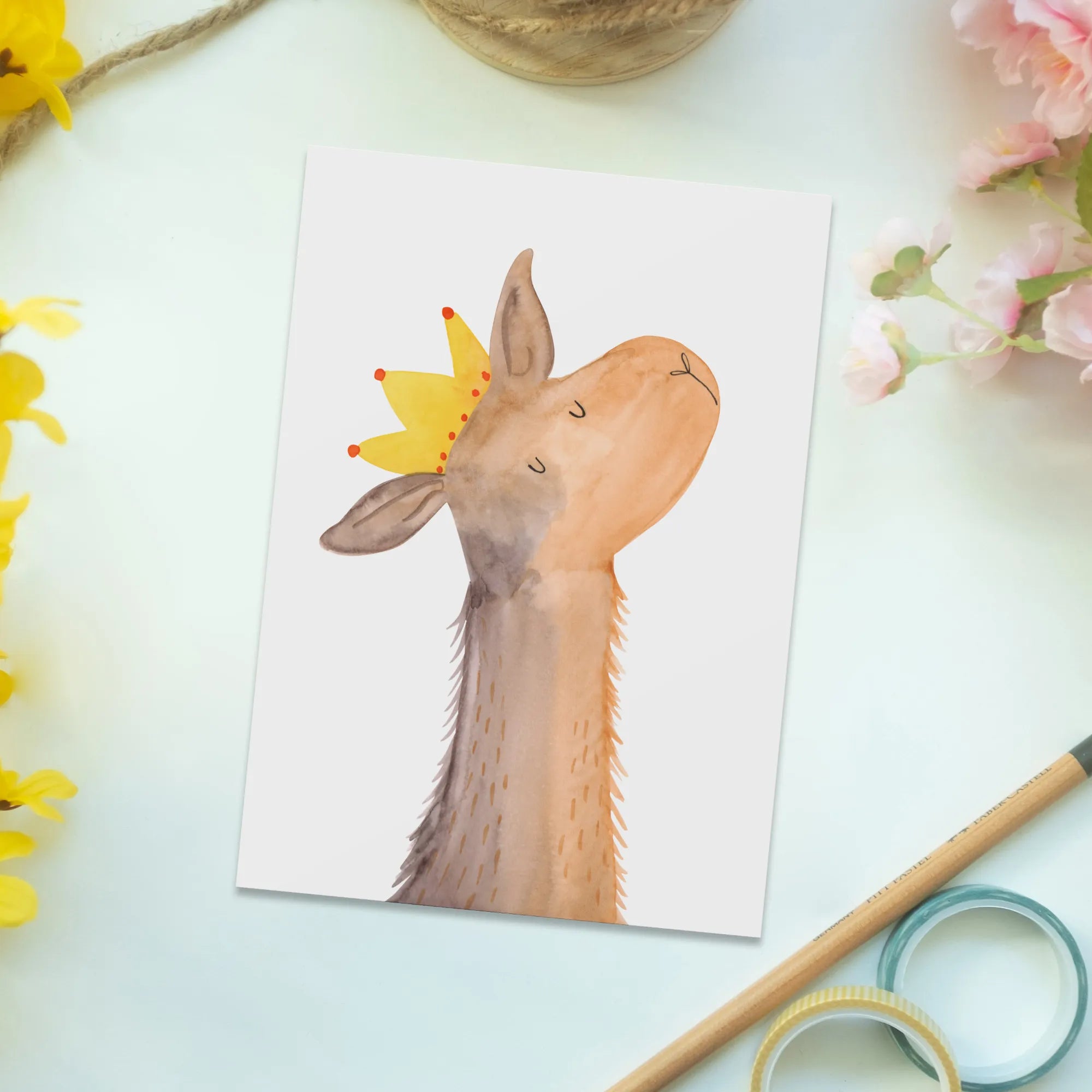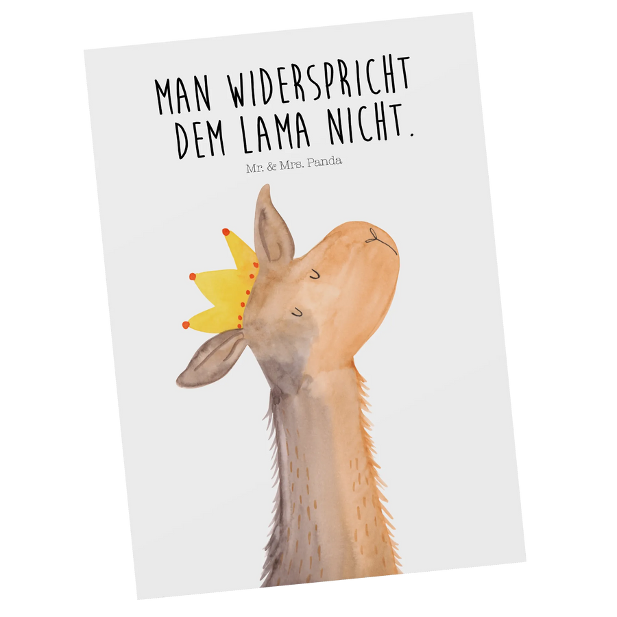 Verschenke die perfekte Postkarte mit dem Motive des Lamakopf Königs aus der Lama-Kollektion von Mr. & Mrs. Panda. Egal, ob du sie für einen Geburtstag, ein besonderes Dankeschön oder einfach so verschenken möchtest, diese Karte bringt garantiert ein Lächeln auf die Gesichter deiner Freunde und Familie.