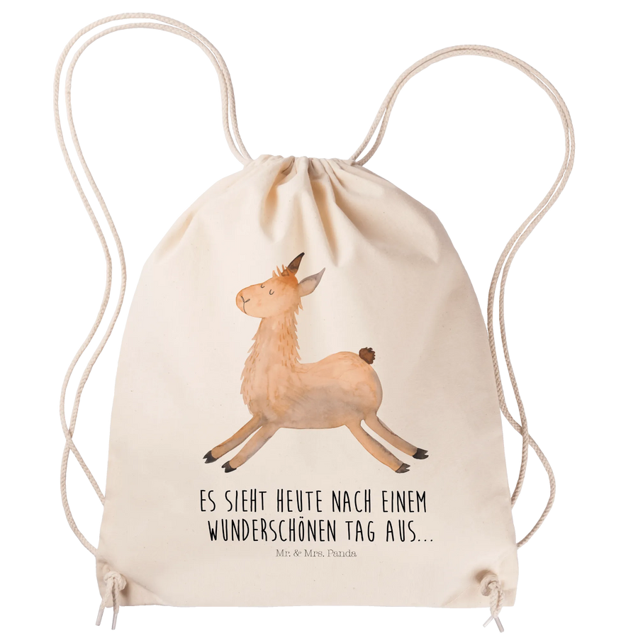 Ein leichter, handbedruckter Sportbeutel aus der Lama - Kollektion von Mr. & Mrs. Panda – voller guter Laune und liebevoller Details. Hol dir dein Lama und starte fröhlich in den Tag! 🦙✨