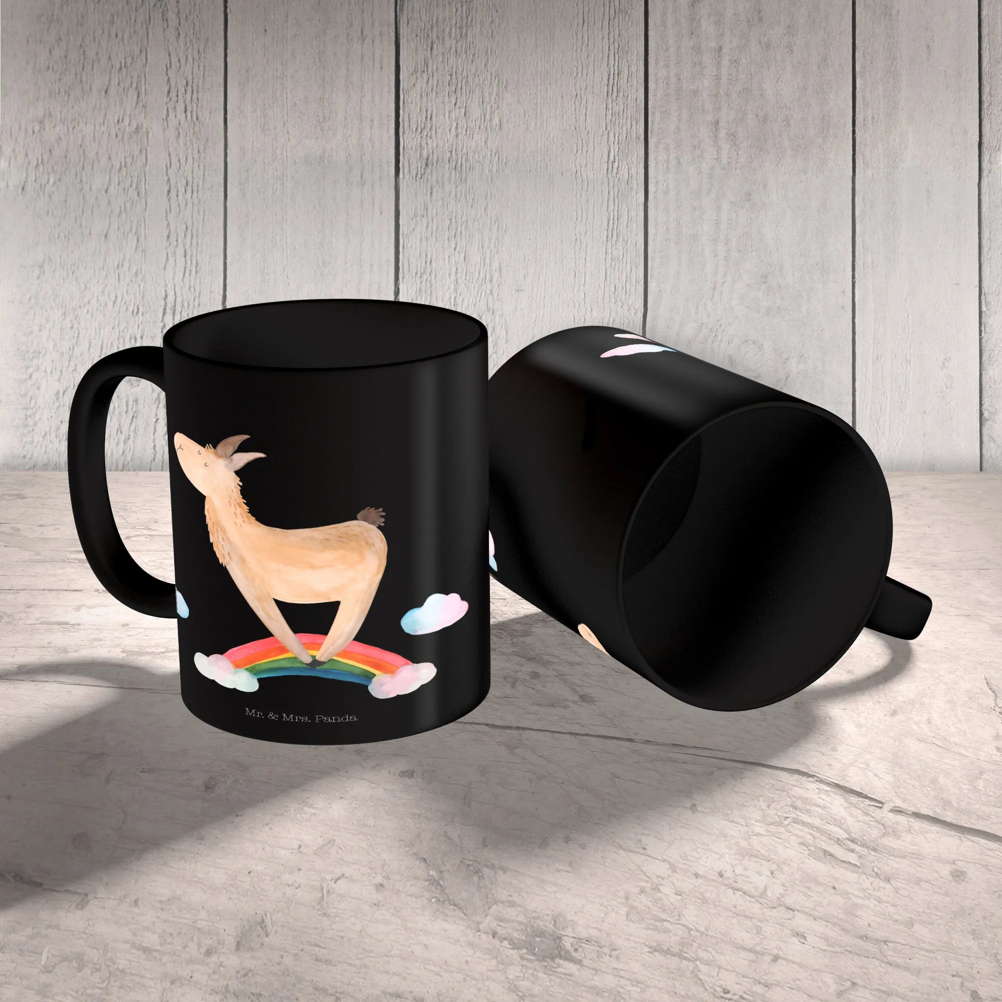 Tasse Lama Regenbogen - Keramik Schwarz - Schwarz