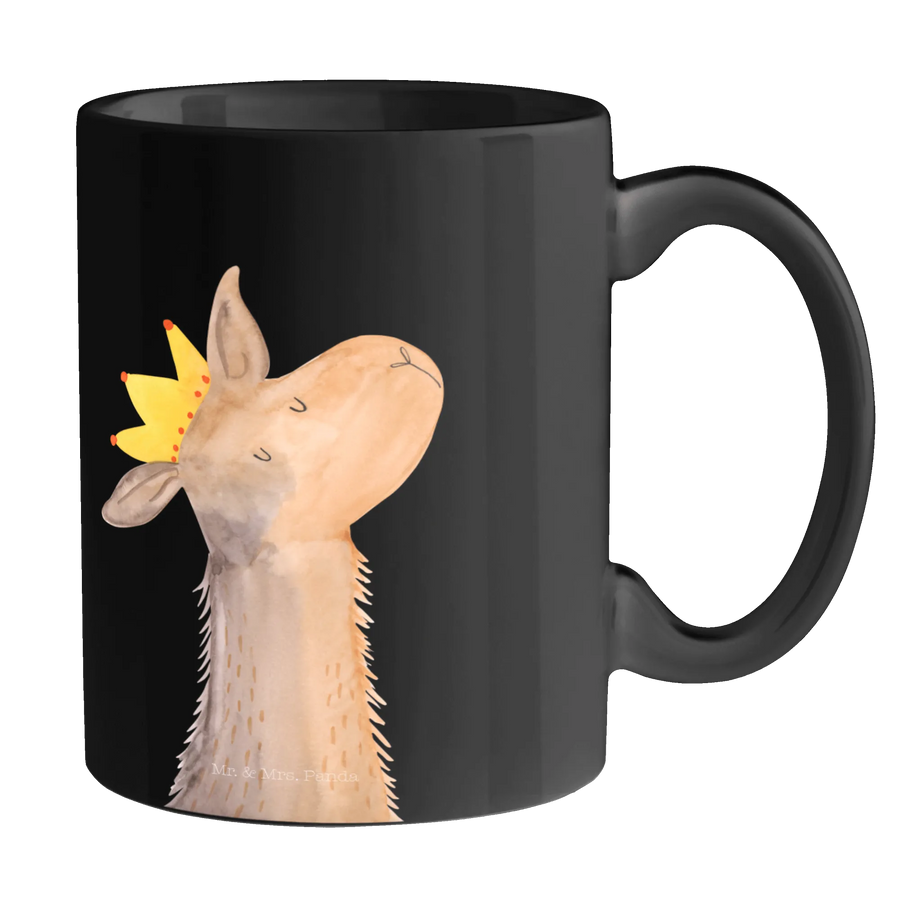 Tasse Lamakopf König - ohne Spruch - Keramik Schwarz - Schwarz