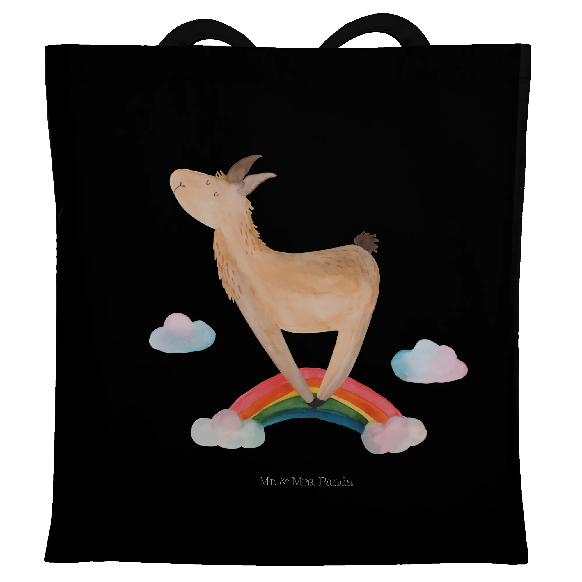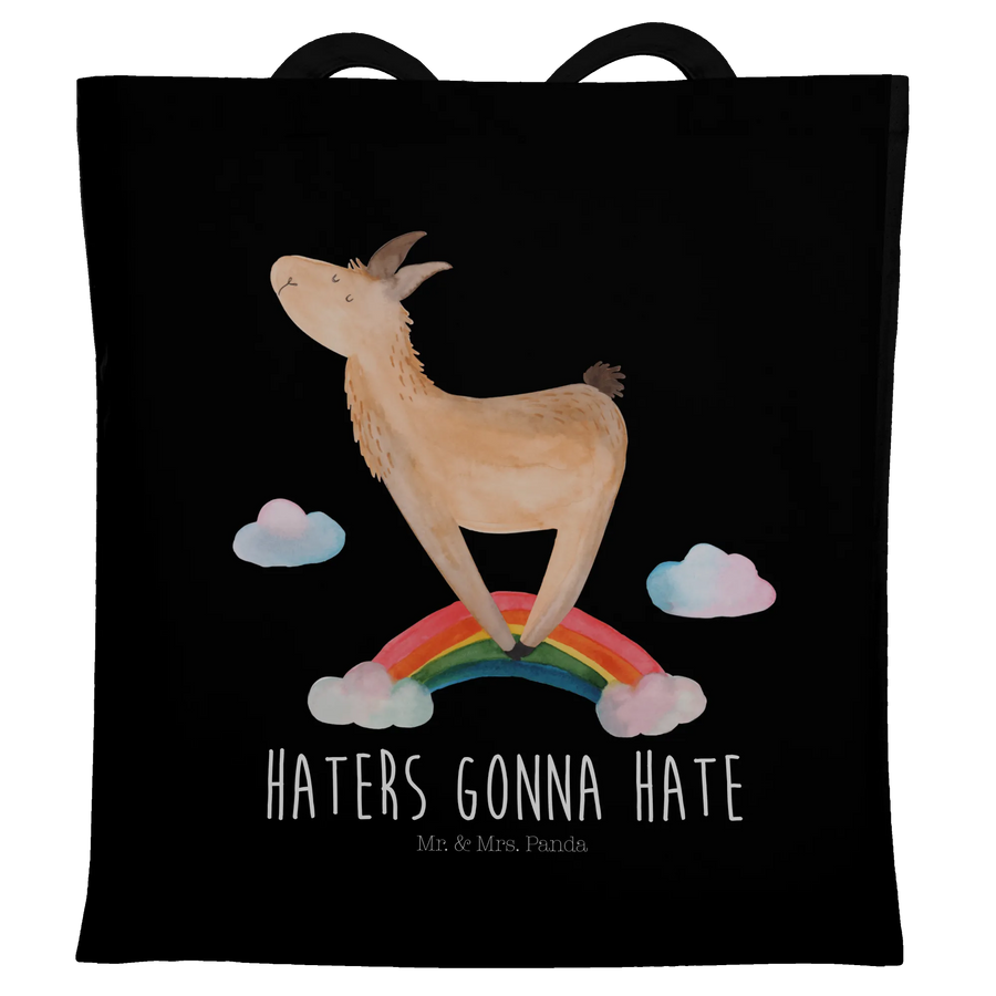 Tragetasche Lama Regenbogen - mit Spruch - Schwarz