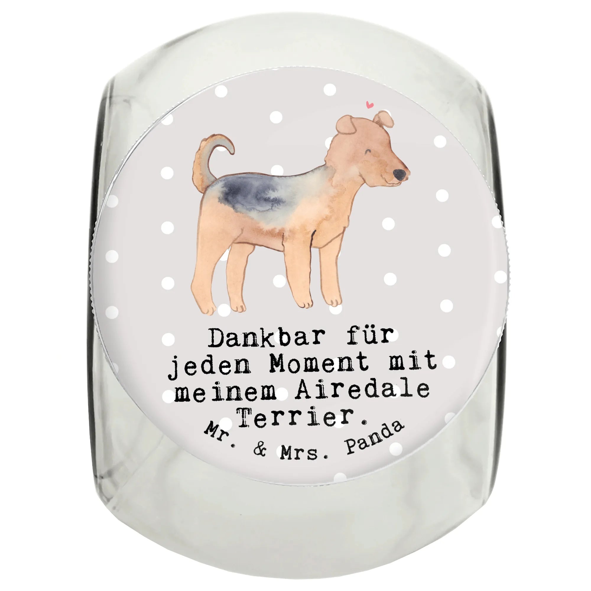 Entdecke das wunderschöne Leckerli Glas "Airedale Terrier Moment" von Mr. & Mrs. Panda! Dieses bezaubernde Glas ist nicht nur ein praktischer Aufbewahrungsort für Hundeleckerlies, sondern auch ein echtes Schmuckstück für dein Zuhause.