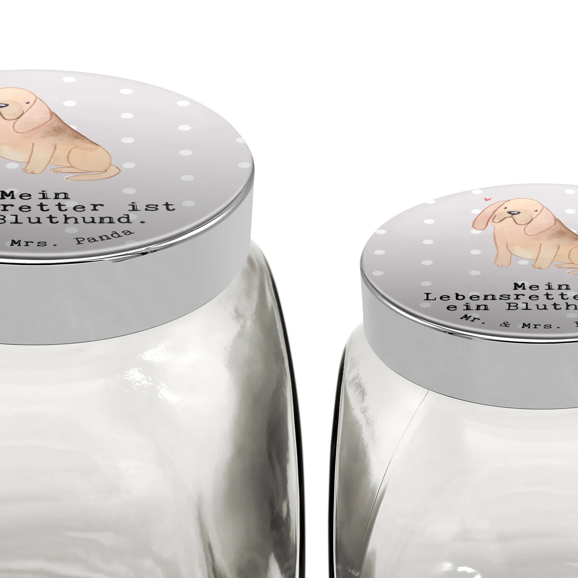 Entdecke unser zauberhaftes Leckerli Glas mit dem liebevollen Motiv "Mein Lebensretter ist ein Bluthund" aus der einzigartigen Hunderasse Kollektion von Mr. & Mrs. Panda. Dieses wunderschöne Vorratsglas ist nicht nur ein praktisches Accessoire für alle Hundebesitzer, sondern auch ein ideales Geschenk für Tierfreunde und Hundefans. Verwöhne deinen treuen Begleiter mit seinen Lieblingsleckerlis – sei es für den Welpen oder den ausgewachsenen Hund.