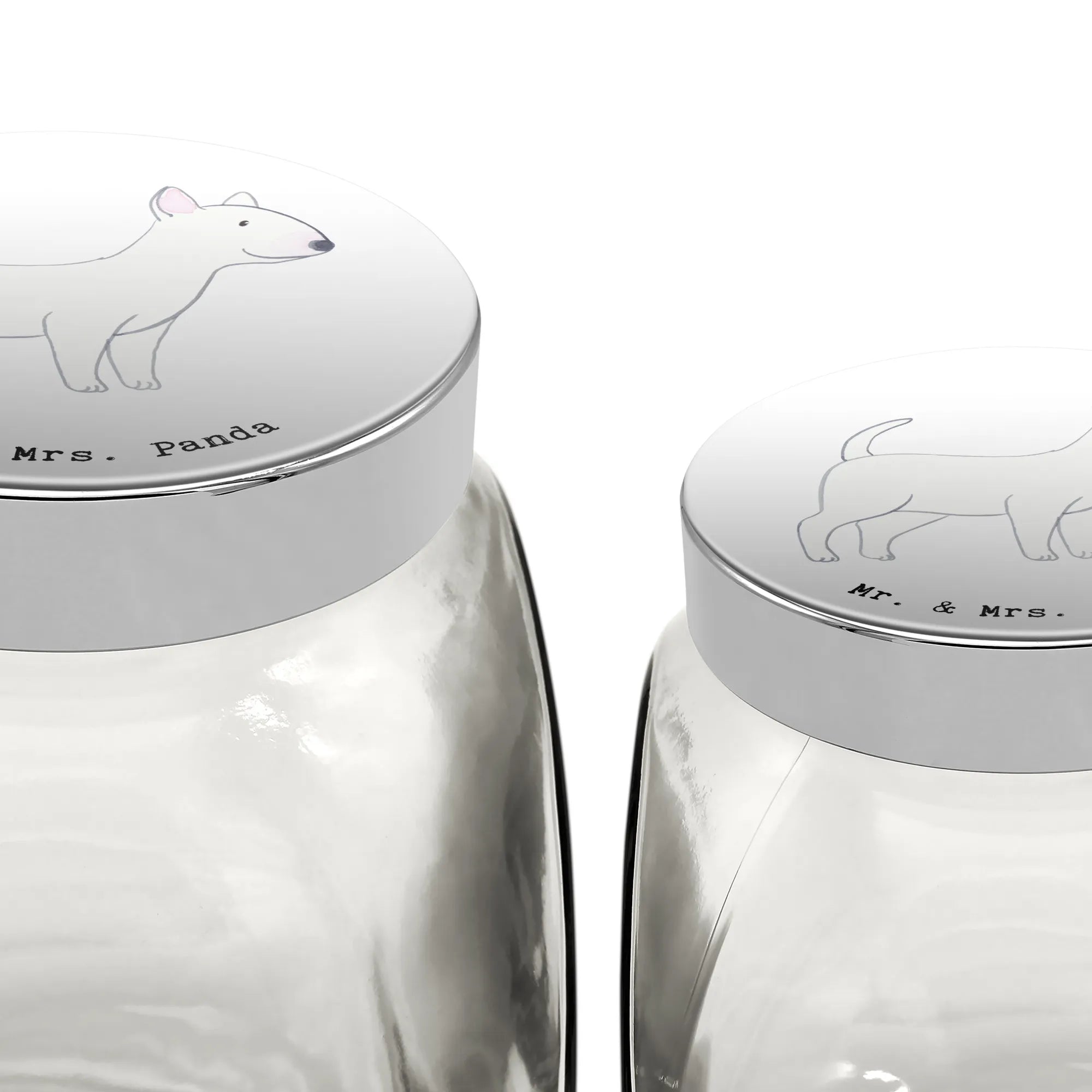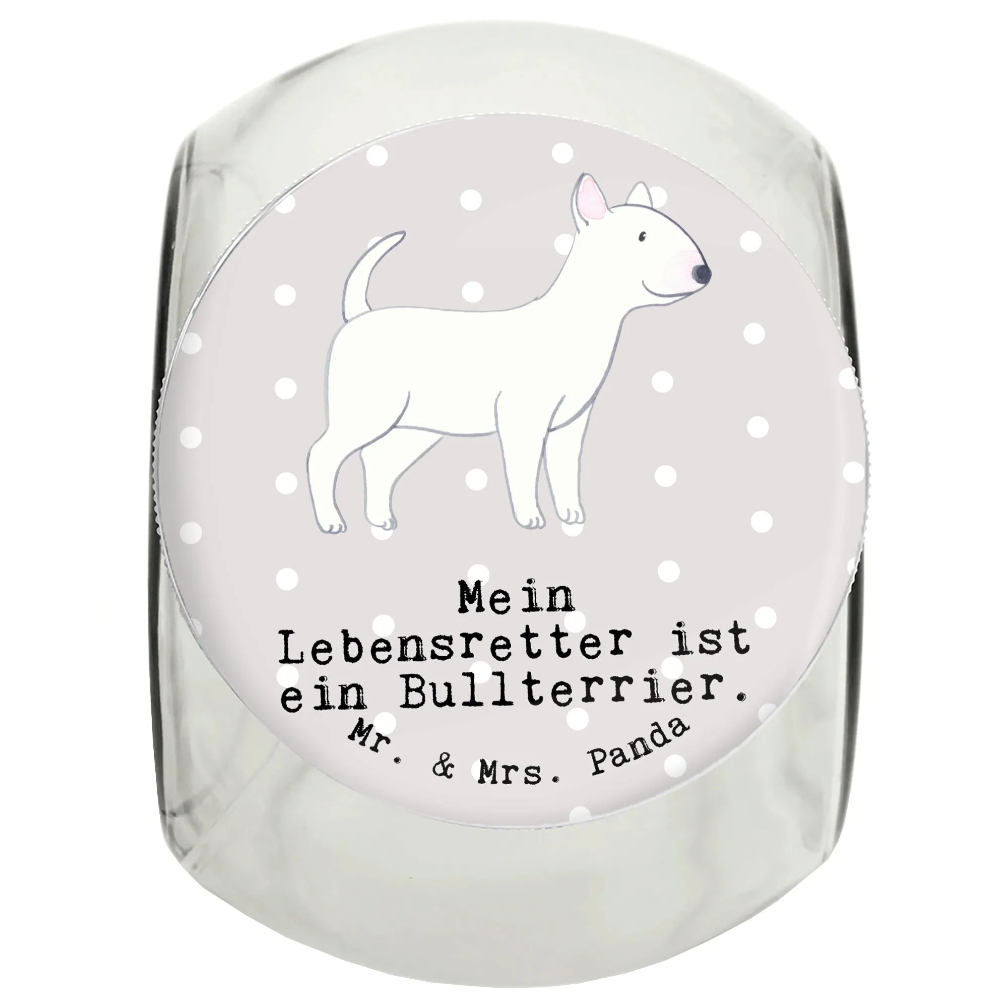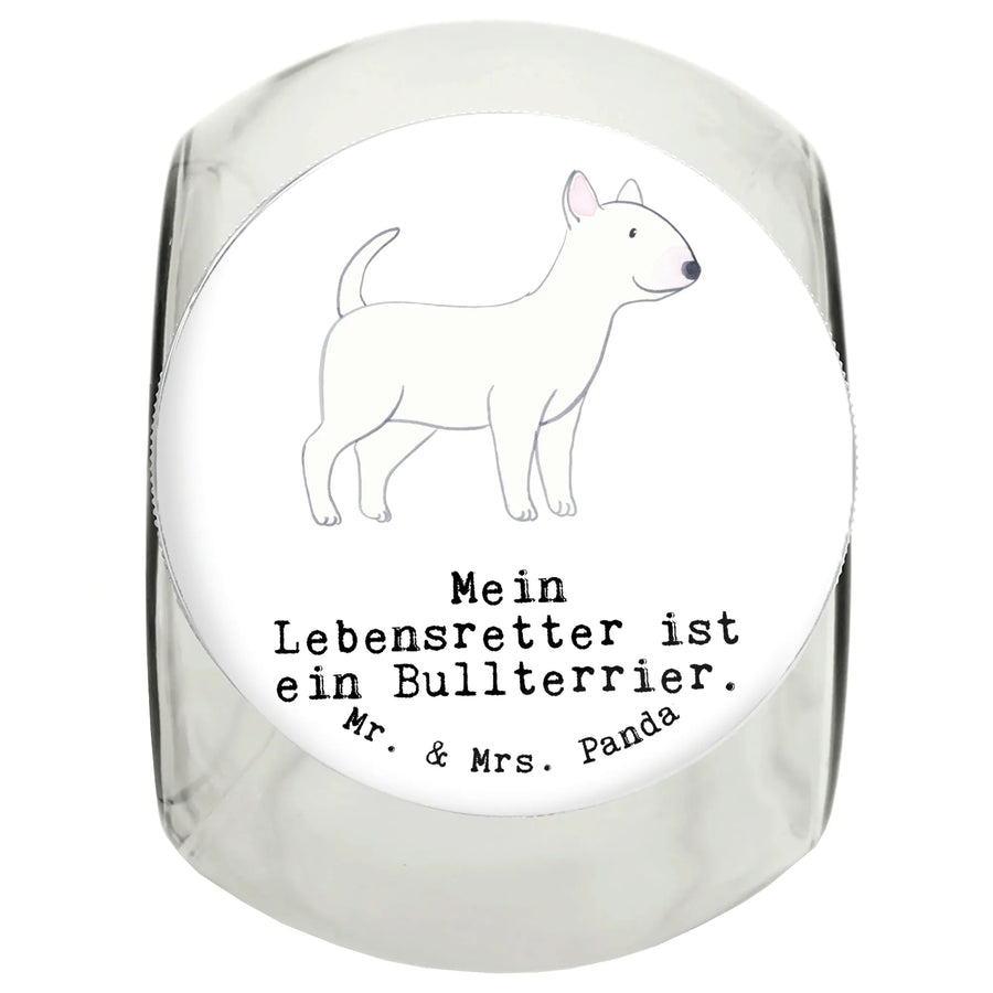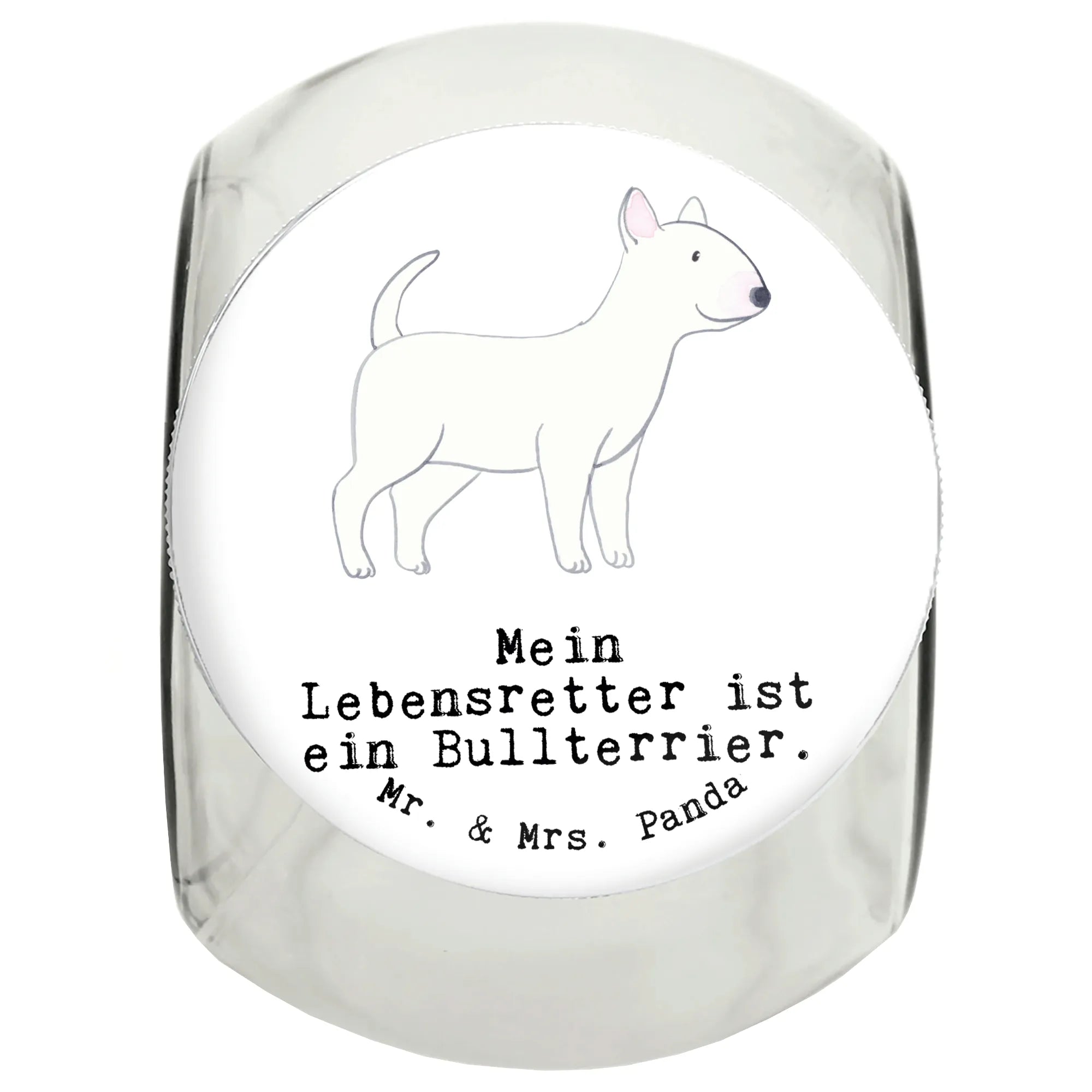 Das wunderschöne Leckerli Glas mit dem einzigartigen Motiv "Mein Lebensretter ist ein Bullterrier" von Mr. & Mrs. Panda ist das perfekte Geschenk für jeden Hundeliebhaber!