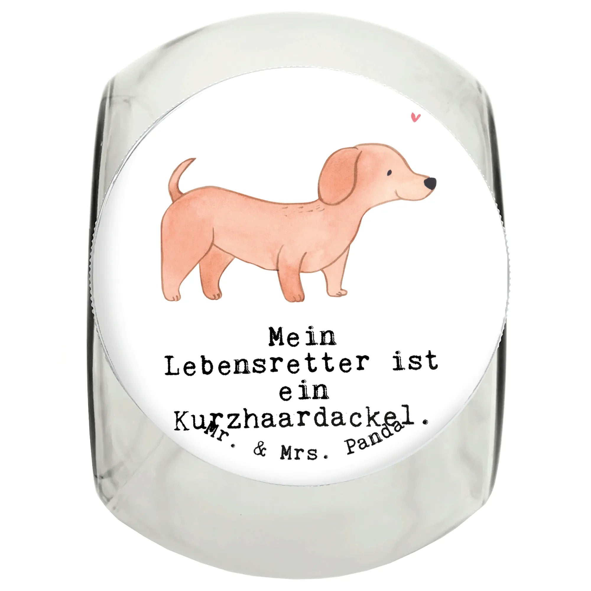 Das Leckerli Glas Dackel Kurzhaardackel Lebensretter von Mr. & Mrs. Panda ist das ideale Geschenk für jeden Hundeliebhaber, besonders für Dackel-Fans! Bunt bedruckt mit einem großartigen Motiv, das einen süßen Kurzhaardackel zeigt, versprüht es einen freundlichen Charme. Der Spruch 'Mein Lebensretter ist ein Kurzhaardackel' macht dieses Glas zu etwas ganz Besonderem.