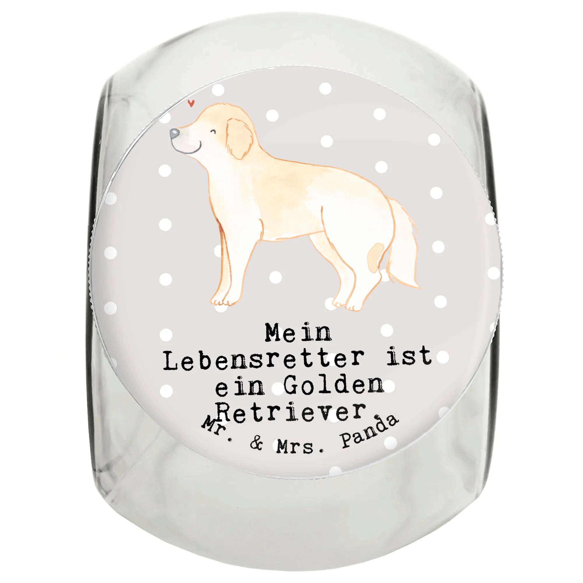 Das Leckerli Glas von Mr. & Mrs. Panda mit dem bezaubernden Motiv "Golden Retriever Lebensretter" ist das perfekte Geschenk für Hundeliebhaber und Tierfreunde! 🐾✨ Mit einem Füllvolumen von 870 ml bietet es ausreichend Platz für die liebsten Snacks Deiner vierbeinigen Freunde. Ob für Hundeleckerlis, Katzenfutter oder für die Aufbewahrung anderer Leckereien, dieses Glas ist einfach ideal.
