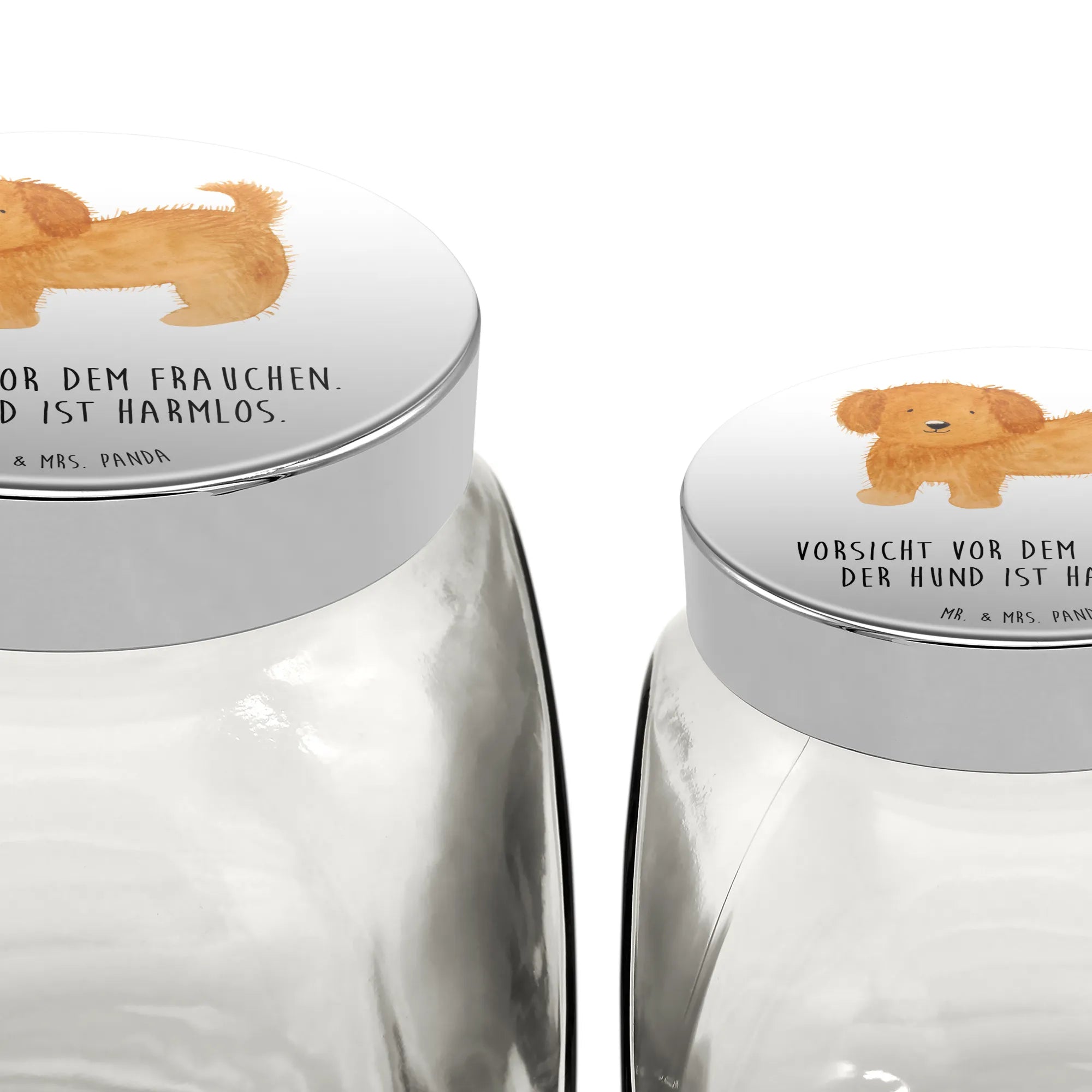 Die süße, handgezeichnete Illustration eines flauschigen Hundes kombiniert mit dem witzigen Spruch "Vorsicht vor dem Frauchen. Der Hund ist harmlos." sorgt für ein Schmunzeln und ist ein echter Blickfang in jedem Hunde-Haushalt. Verwende es, um die Lieblingsleckerlis Deines Hundes stilvoll aufzubewahren oder es als dekorativen Akzent in Deiner Küche zu platzieren!