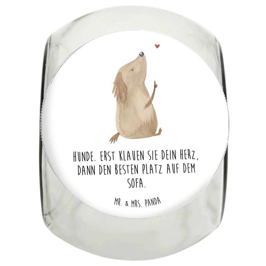 Das Leckerli Glas 'Hund Liebe' von Mr. & Mrs. Panda ist der perfekte Begleiter für alle Hundebesitzer, die ihre süßen Leckereien stilsicher aufbewahren möchten. Mit einem bezaubernden Motiv eines süßen Hundes, der ein kleines Herz zeigt, bringt dieses Glas jede Menge Freude in dein Zuhause. Der Spruch 'Hunde. Erst klauen sie dein Herz, dann den besten Platz auf dem Sofa.' ist nicht nur ein humorvoller Hinweis, sondern auch eine liebevolle Anerkennung für die besondere Beziehung zwischen dir und deinem vierbeinigen Freund.