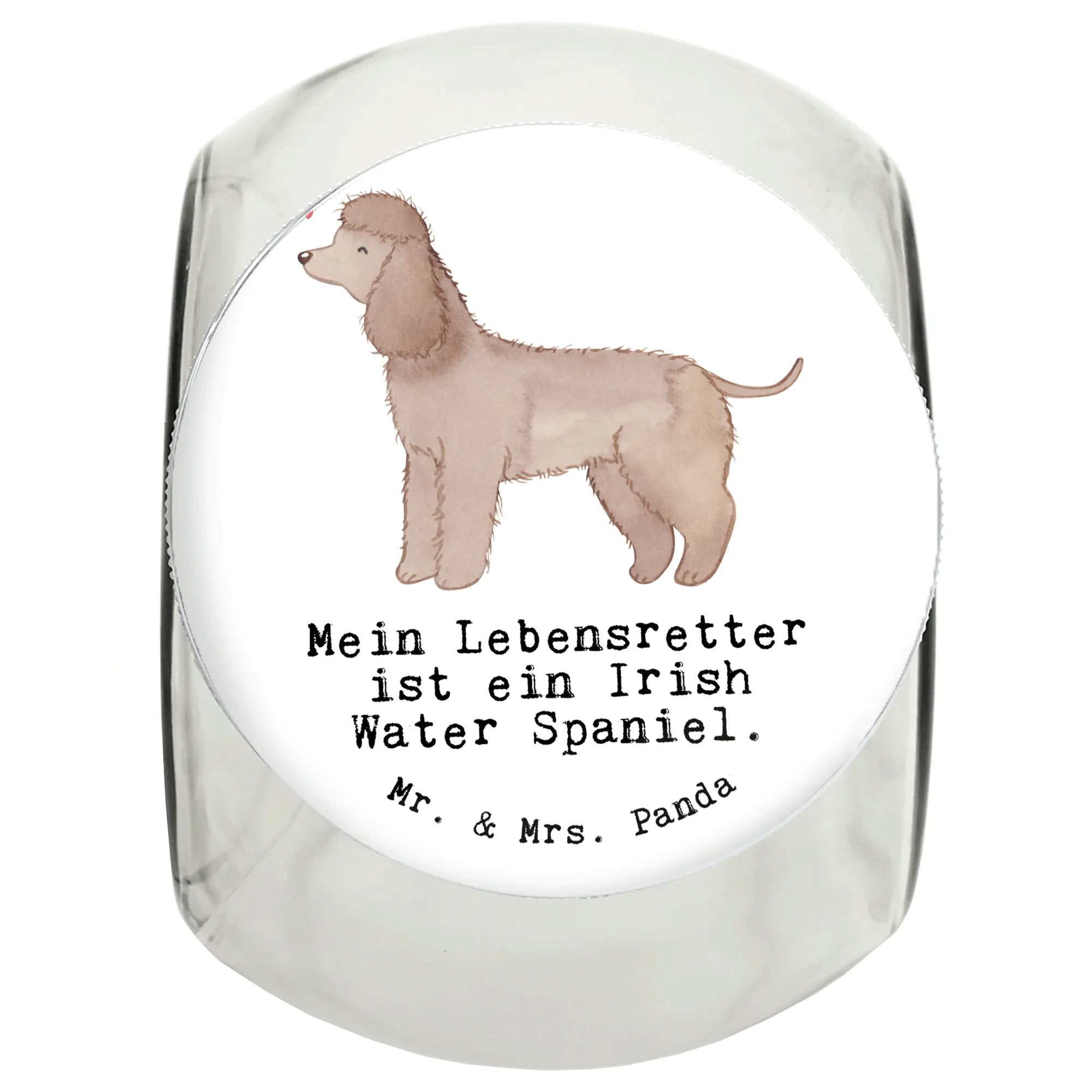Du bist auf der Suche nach dem perfekten Geschenk für einen Hundebesitzer oder einen Tierfreund? Unser wunderschönes Leckerli Glas mit dem Motiv 'Mein Lebensretter ist ein Irish Water Spaniel' von Mr. & Mrs. Panda ist genau das, was du suchst!