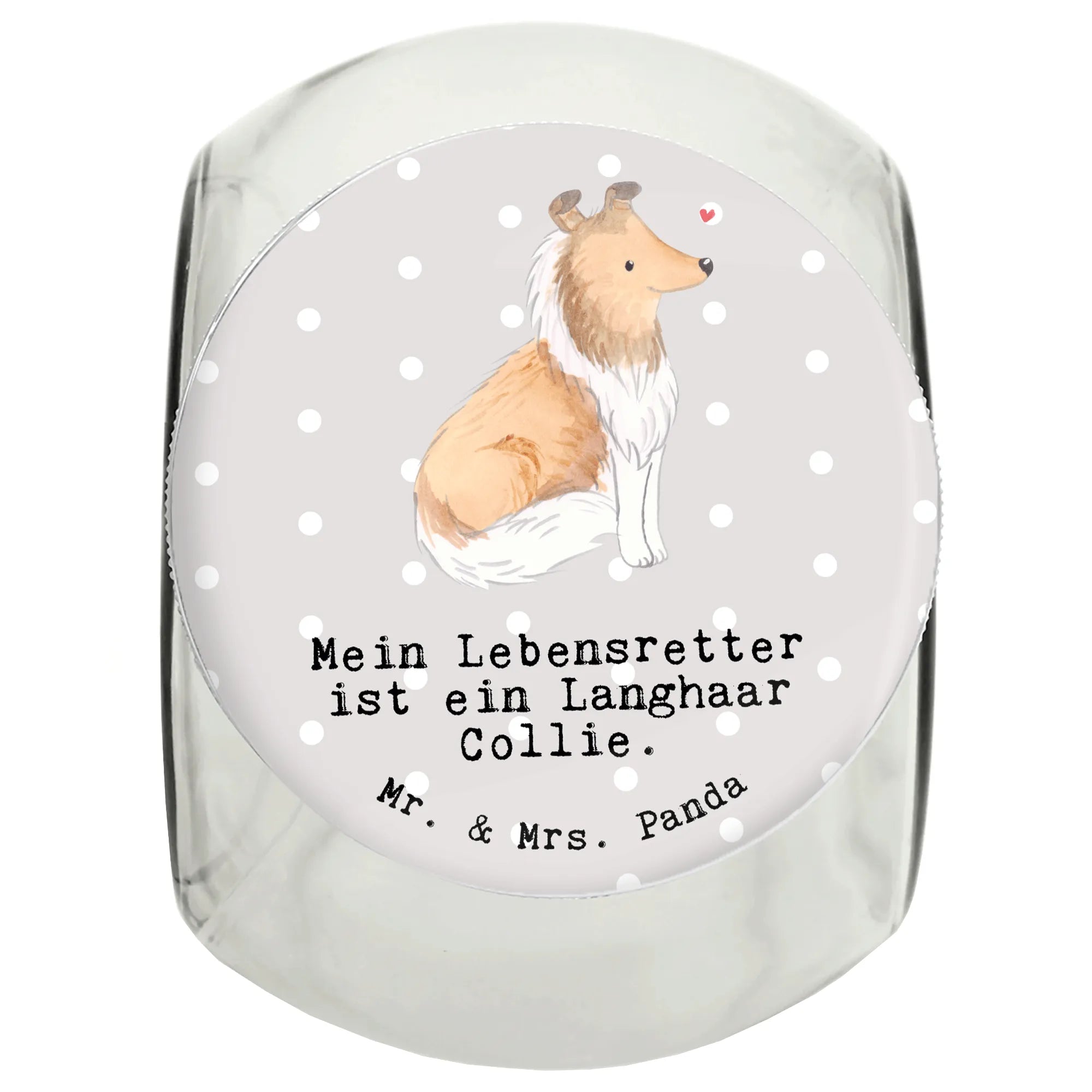 Leckerli Glas Langhaar Collie Lebensretter - XL 2000ml - mit Spruch - Grau Pastell