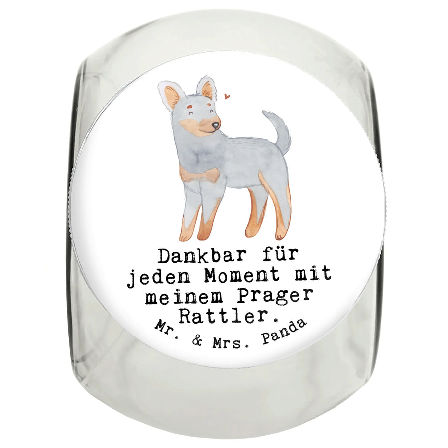 Das Leckerli Glas 'Prager Rattler Moment' von Mr. & Mrs. Panda ist das perfekte Geschenk für jeden Hundefreund und stolzen Hundebesitzer. Mit einem wunderschön gestalteten Motiv eines Prager Rattlers, der freundlich schaut und von einem kleinen, roten Herz umgeben ist, zaubert dieses Glas ein Lächeln auf jedes Gesicht. Der Slogan 'Dankbar für jeden Moment mit meinem Prager Rattler' bringt die besondere Verbindung zwischen dir und deinem vierbeinigen Freund liebevoll zum Ausdruck.