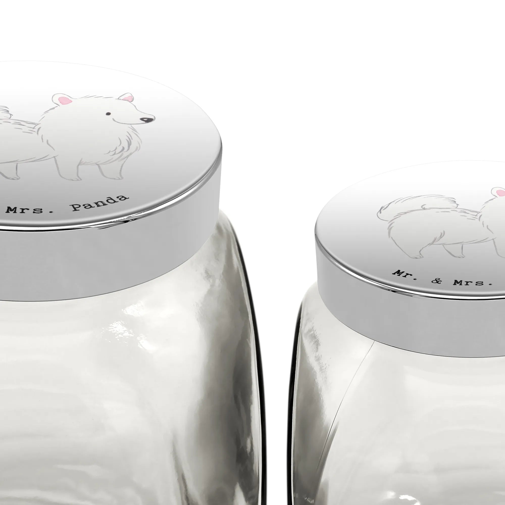 Die süßen Motive und Sprüche auf dem Glas, die von Mrs. Panda handgezeichnet wurden, zeigen einen weißen Spitz – die ideale Darstellung dieser treuen Begleiter. Es ist nicht nur ein Glas für Hundeleckerlies, sondern auch perfekt für Süßigkeiten, Müsli, Tee und viele andere Kleinigkeiten. Mit dem silberfarbenen Schraubverschluss ist das Glas verschlusssicher und bewahrt die Leckereien frisch und aromatisch.