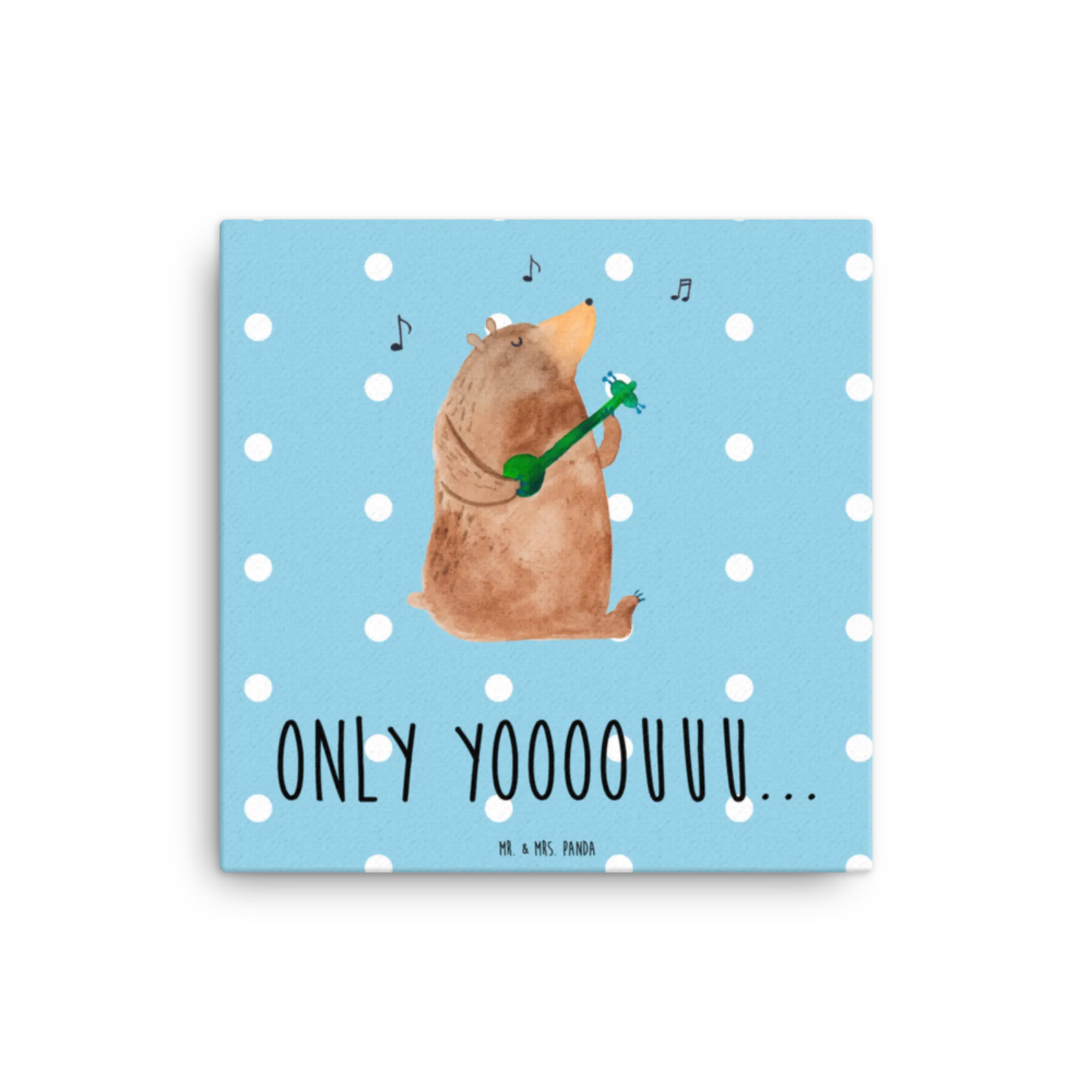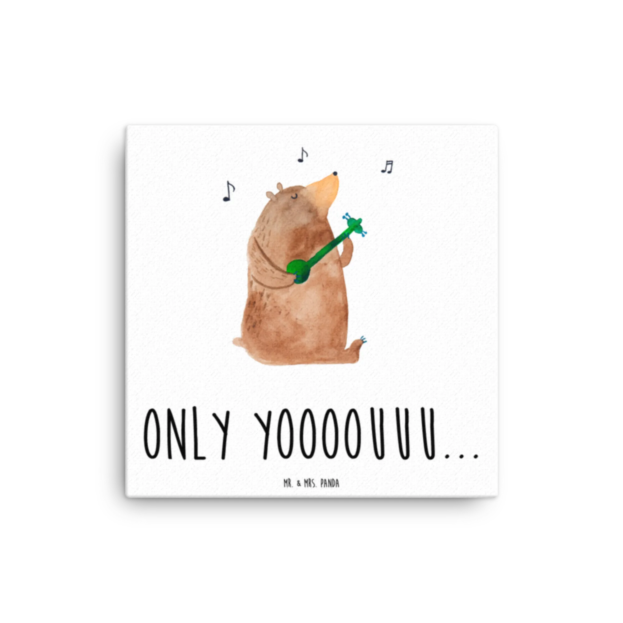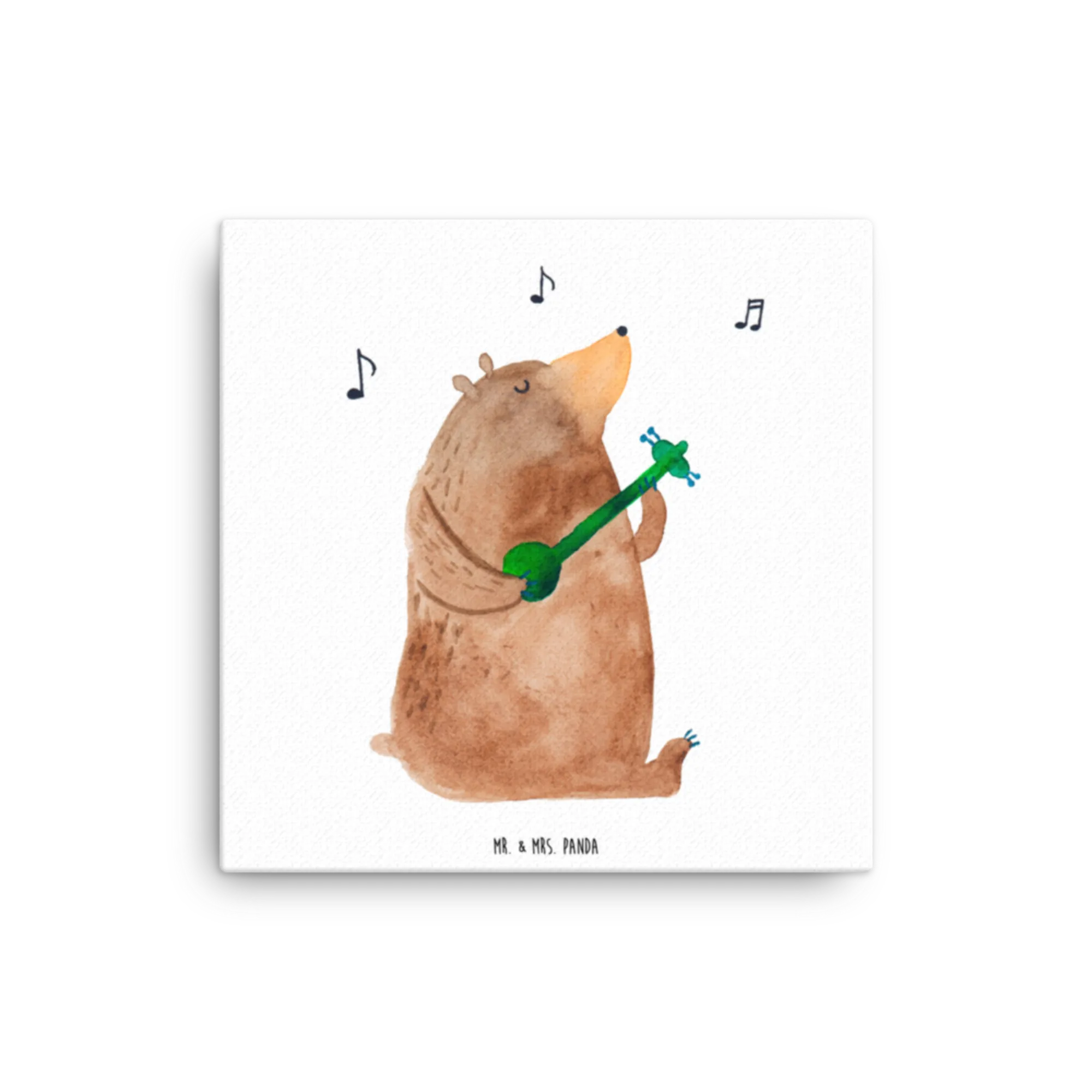 Leinwand Bild Bär Gitarre - 40 x 40 cm - mit Spruch - Weiß