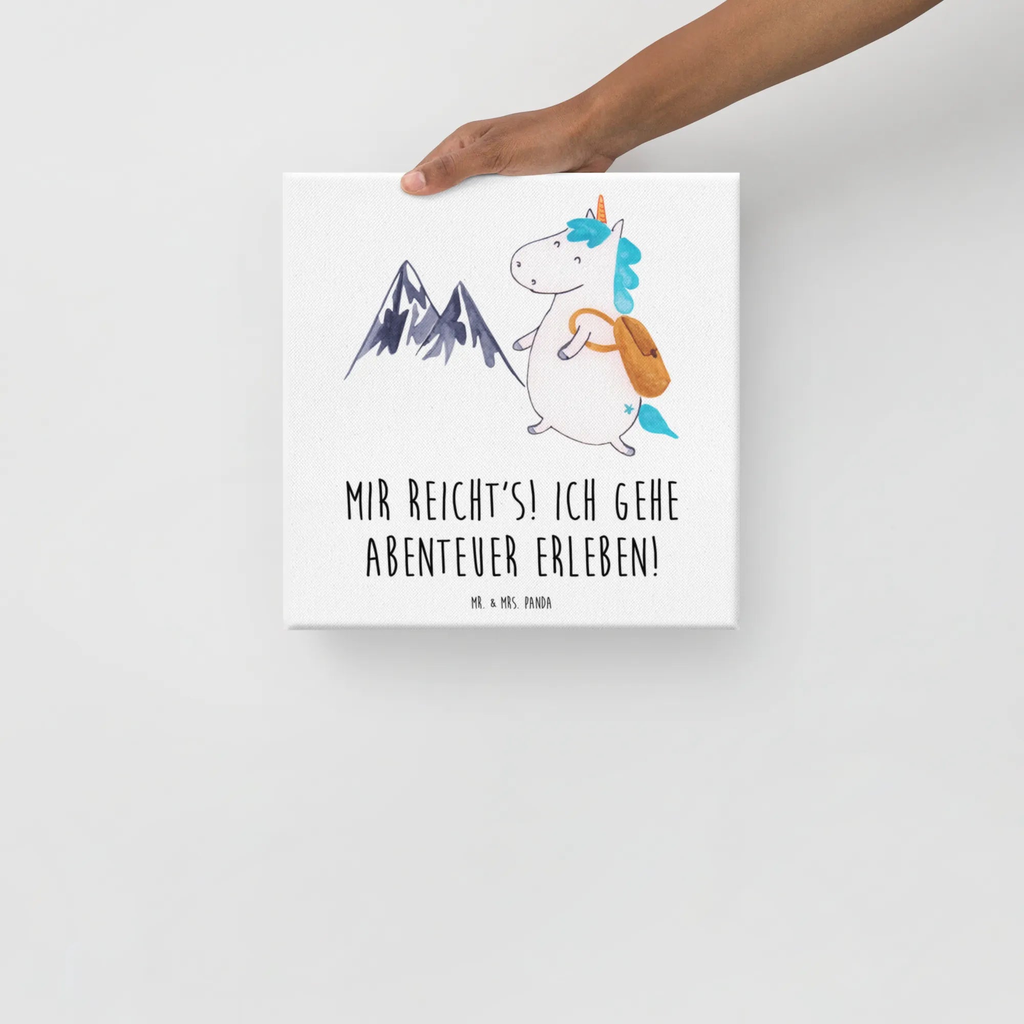 Leinwand Bild Einhorn Bergsteiger - 40 x 40 cm - mit Spruch