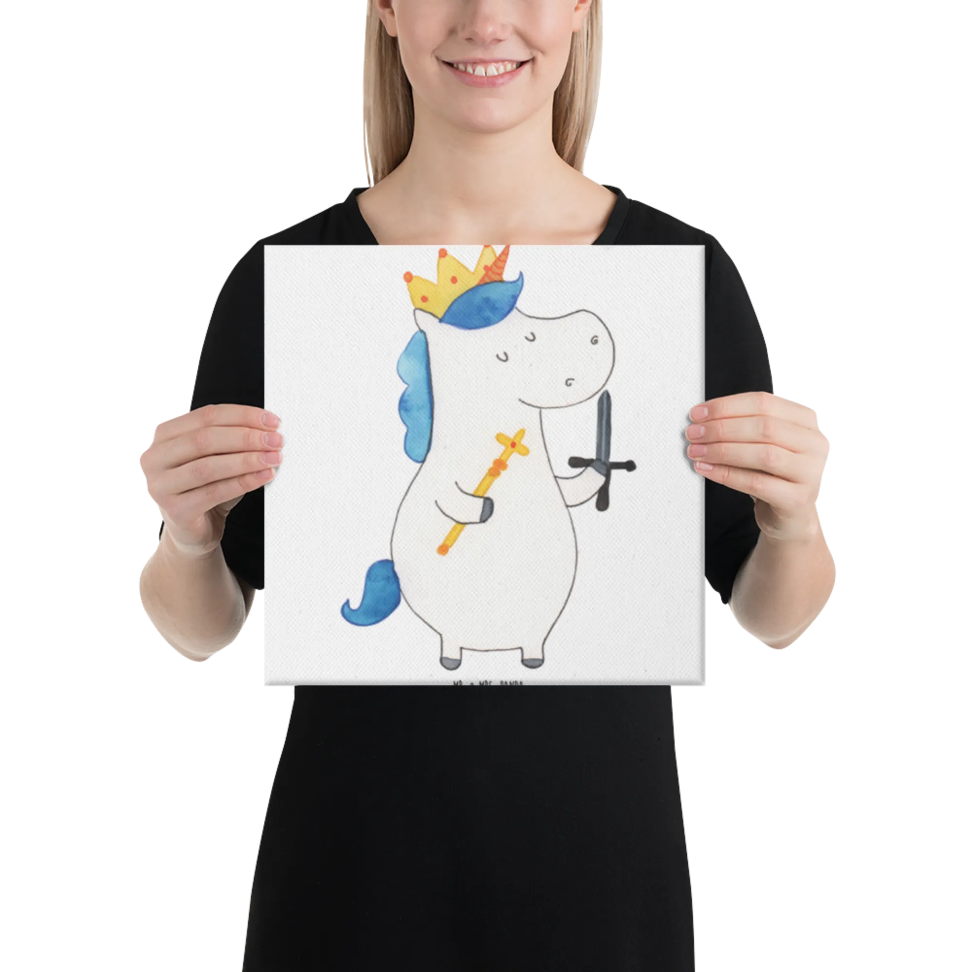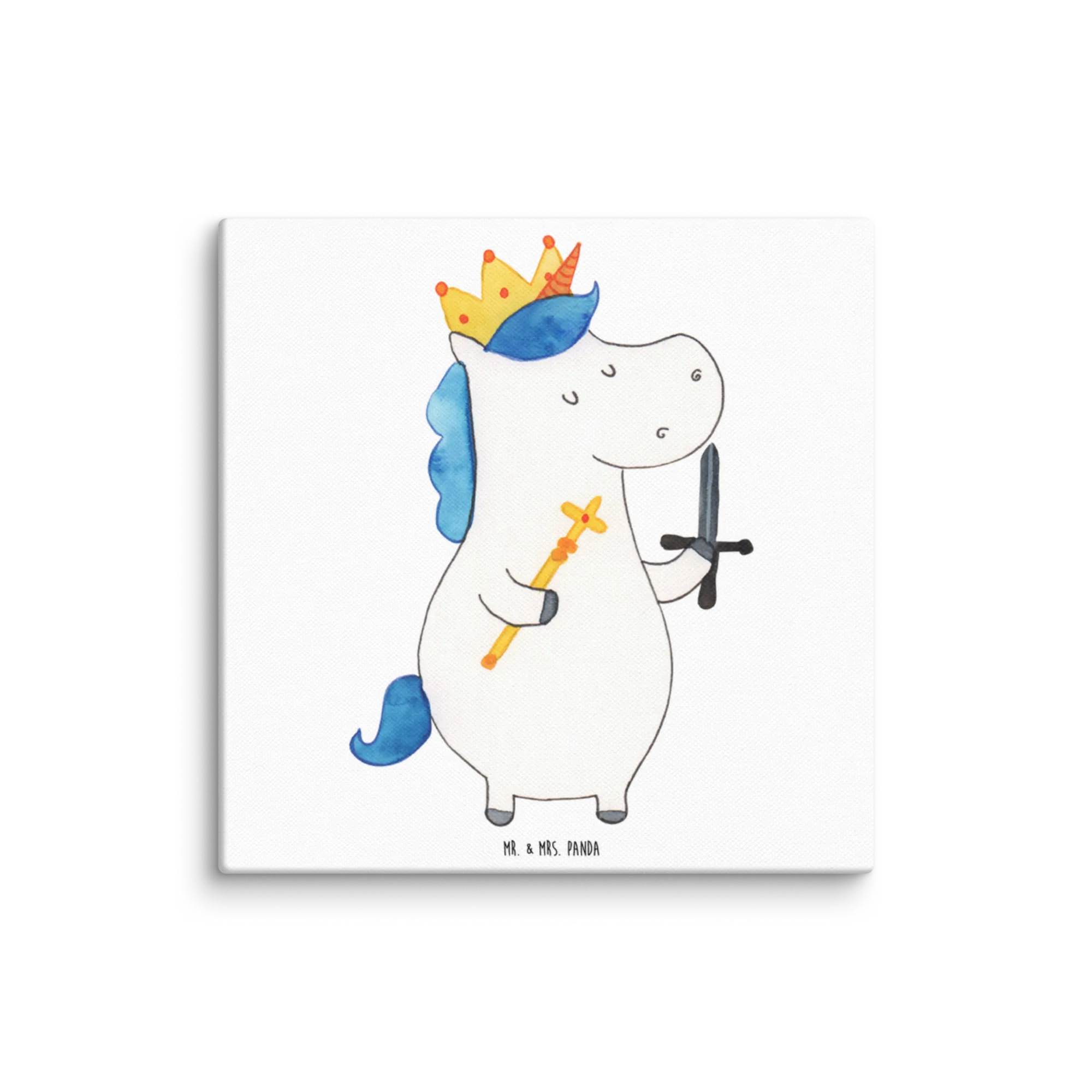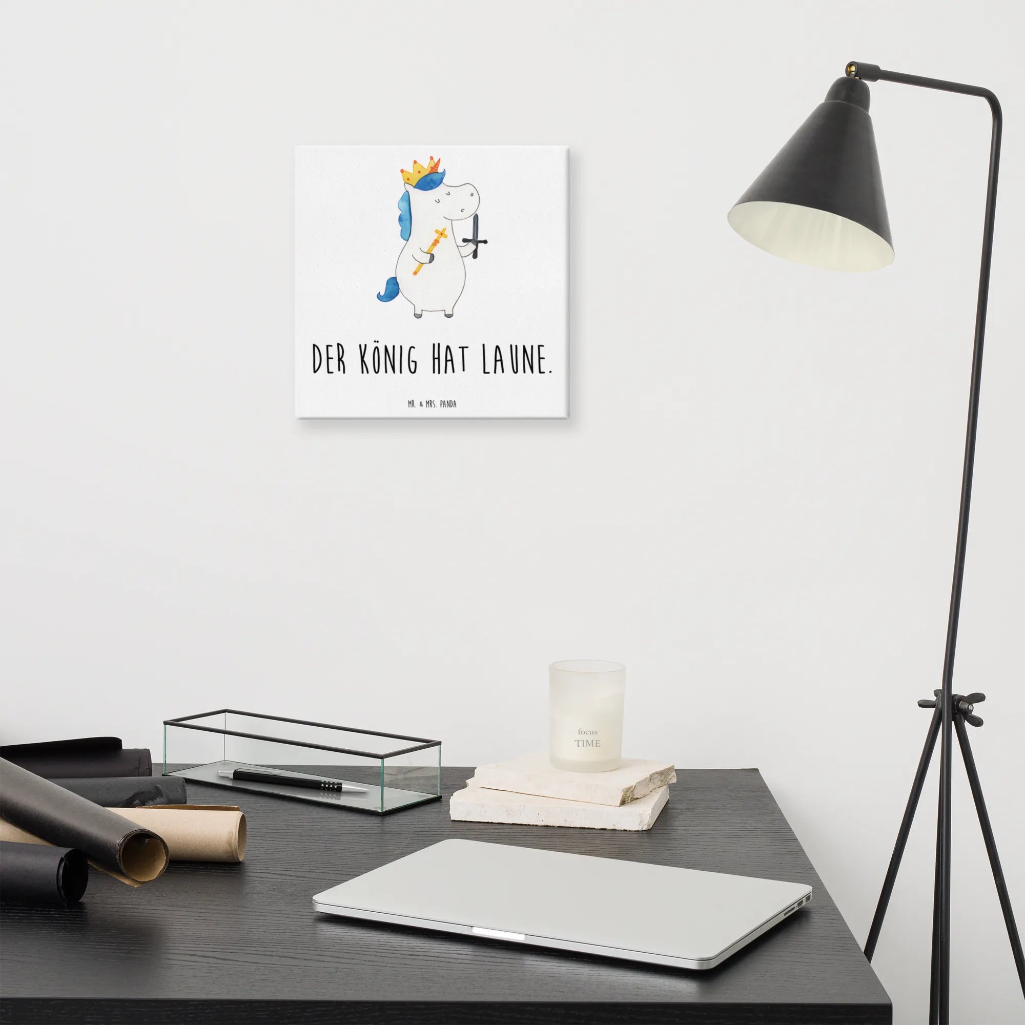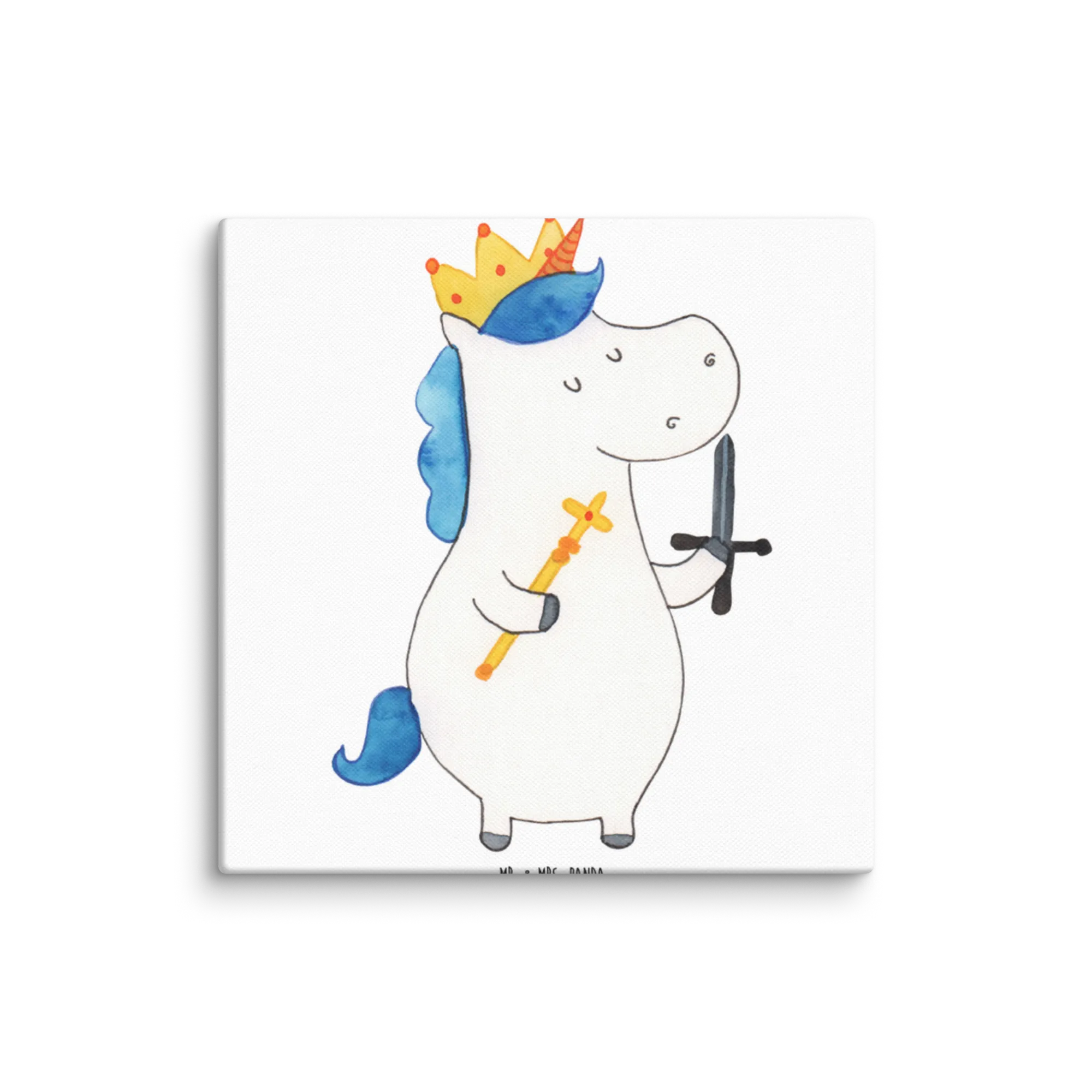 Leinwand Bild Einhorn König mit Schwert - 40 x 40 cm - mit Spruch