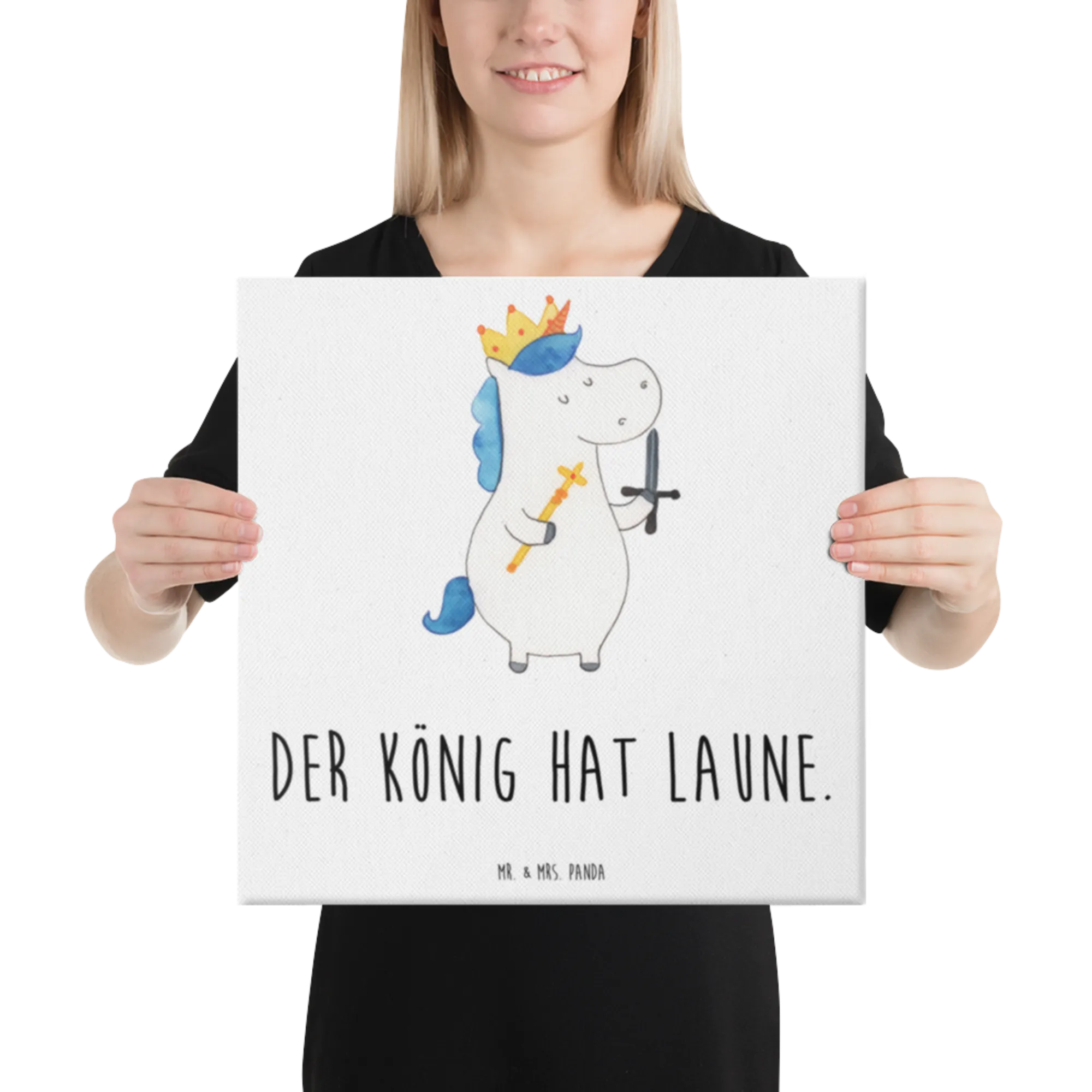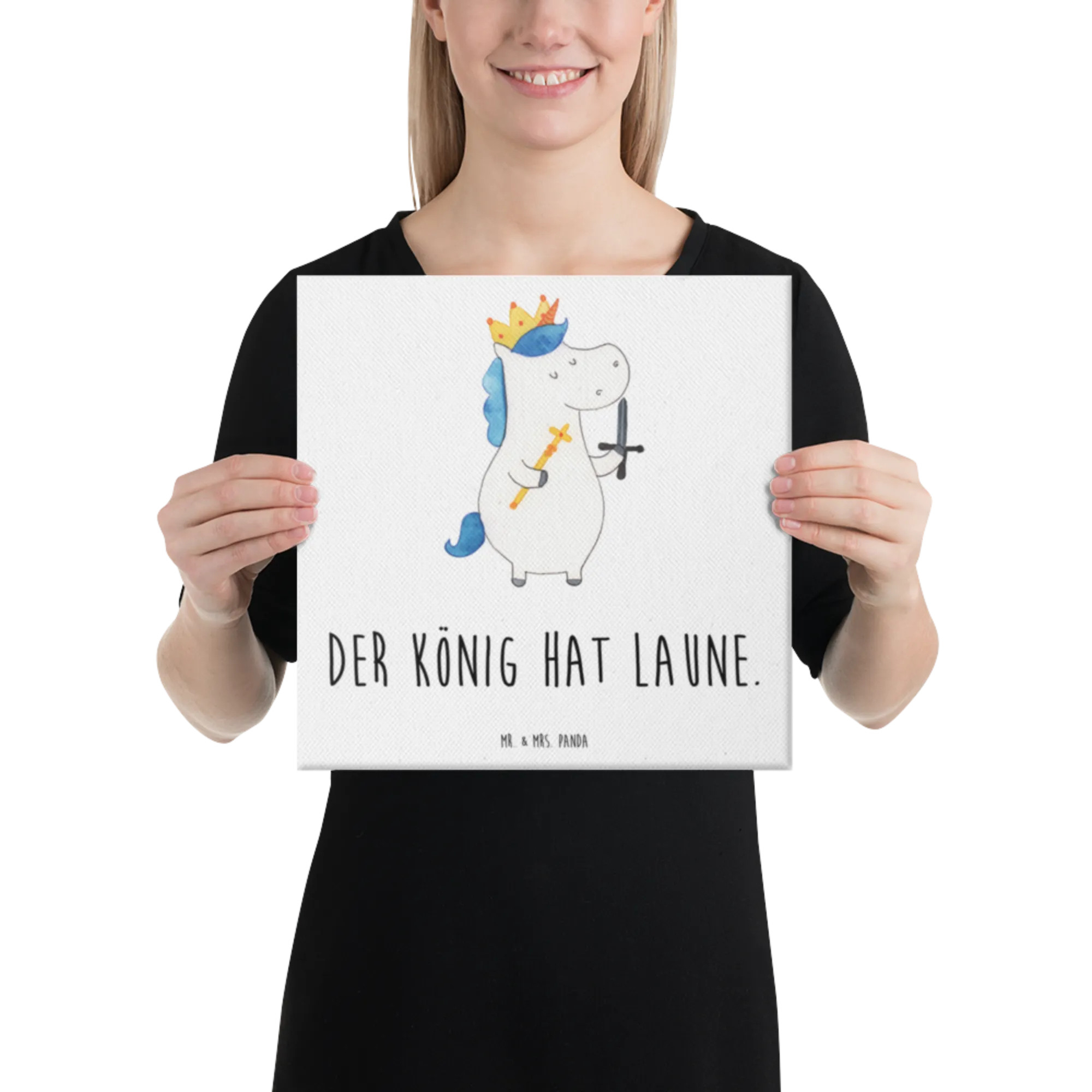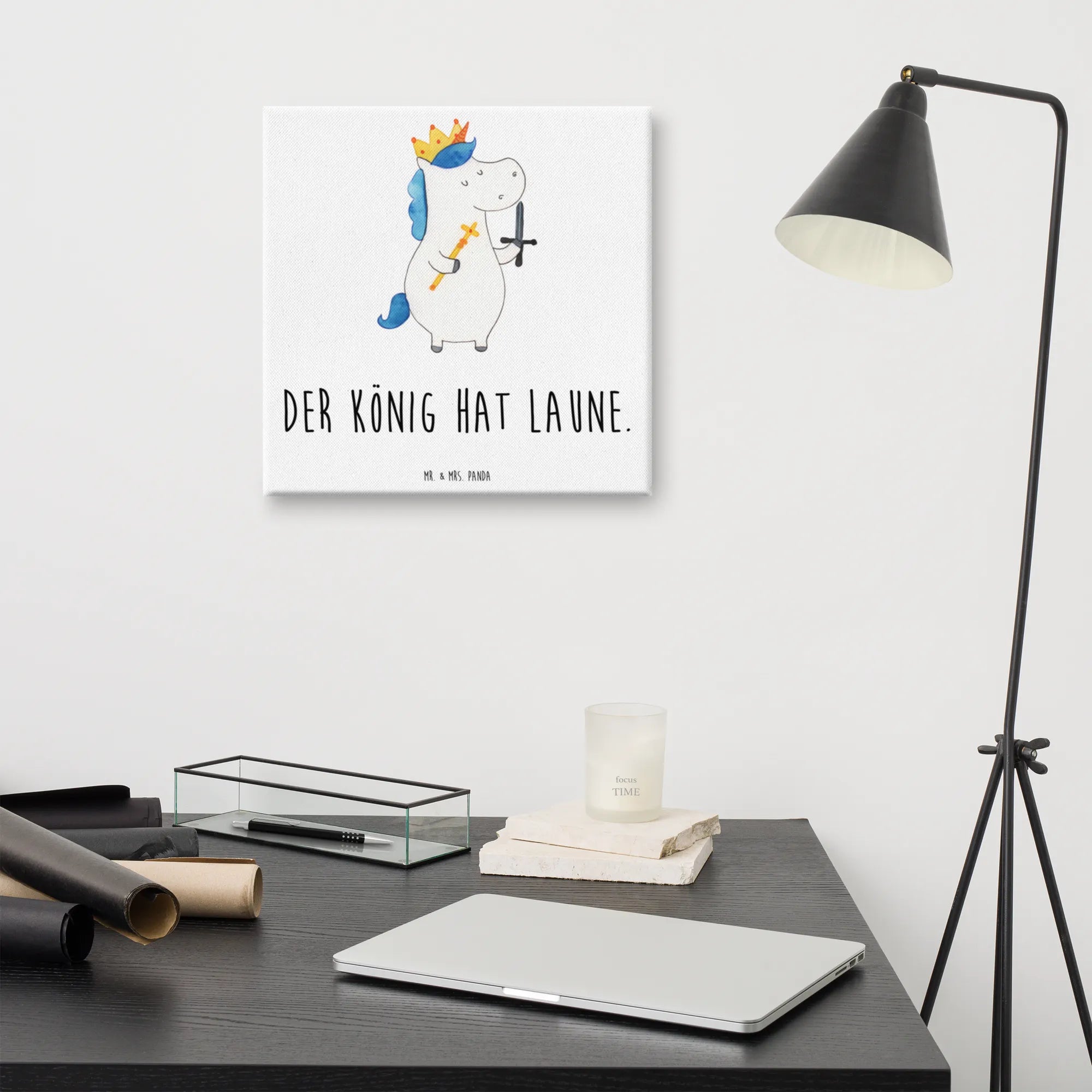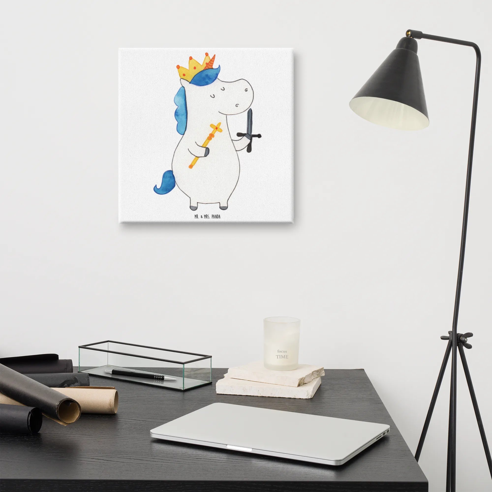 Leinwand Bild Einhorn König mit Schwert - 40 x 40 cm - mit Spruch