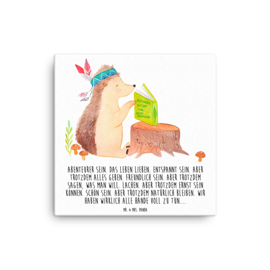 Leinwand Bild Igel Federschmuck - 40 x 40 cm - mit Spruch - Weiß
