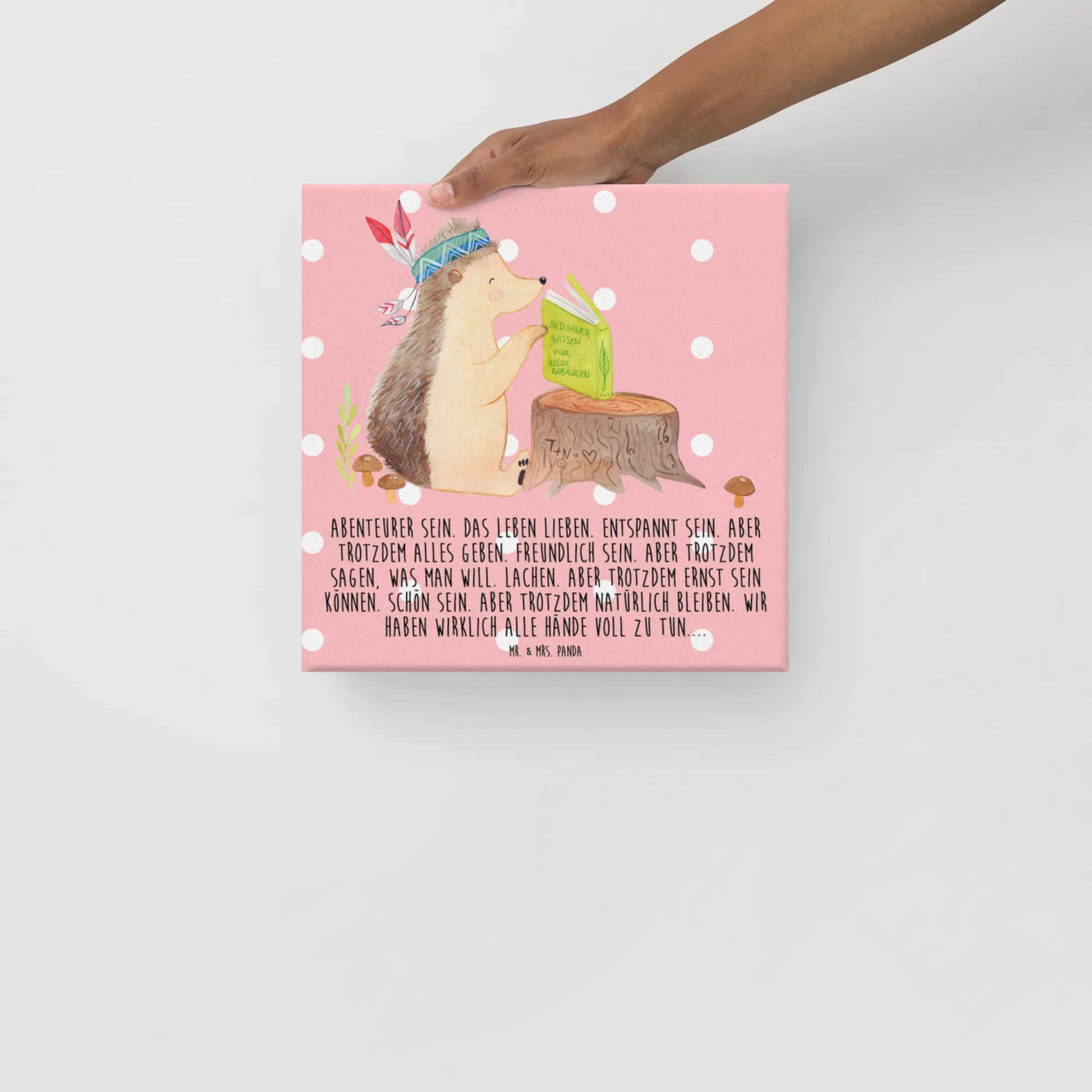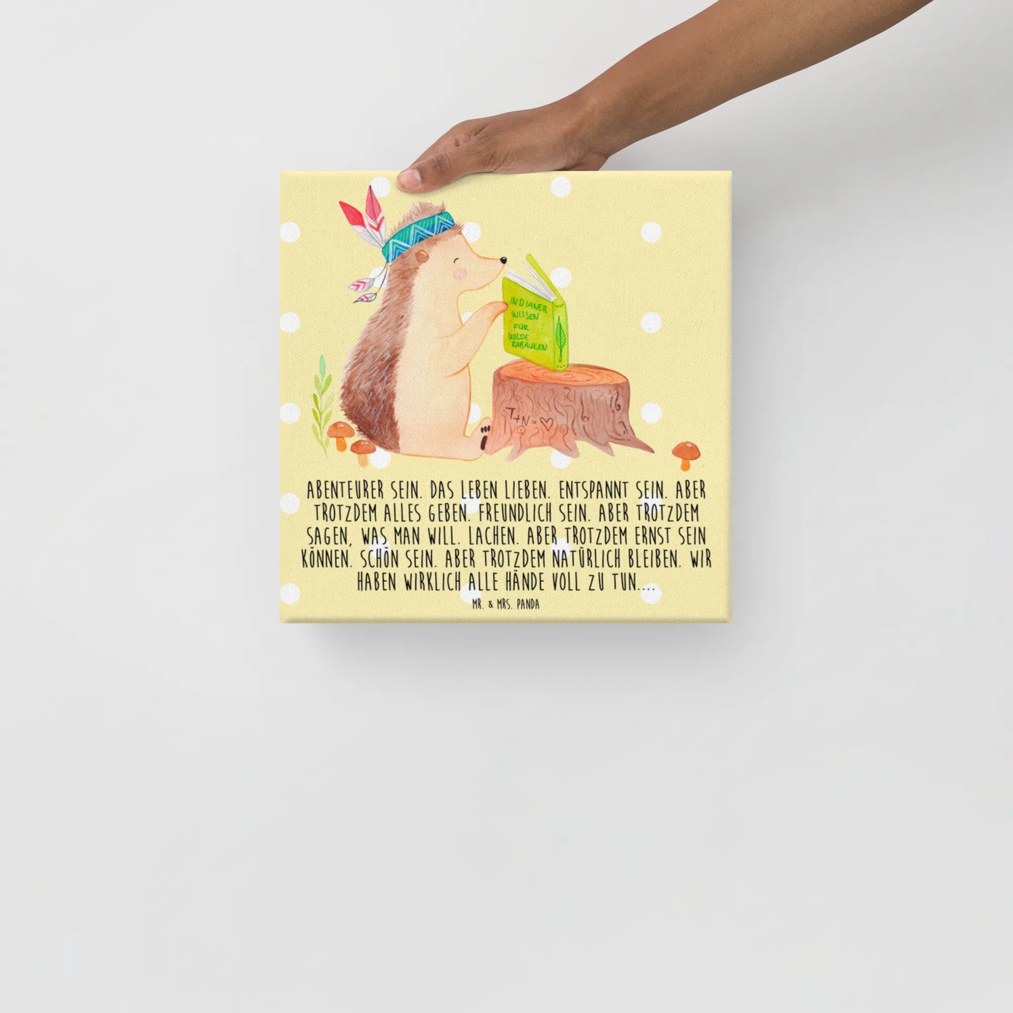Unser Igel-Indianer ist ein wahrer Meister der Abenteuer! Auf seinem Baumstumpf hat er ein Buch voller Geschichten über ferne Länder und neue Freundschaften. Sein Federkopfschmuck steht nicht nur für seine Herkunft, sondern symbolisiert auch, dass jeder von uns ein Abenteurer im Herzen ist. Das Motto ‚Abenteurer sein. Das Leben lieben. Entspannt sein.‘ erinnert uns daran, dass es wichtig ist, mit offenen Augen durch das Leben zu gehen und jeden Moment zu genießen. Lass dich von seinem Mut inspirieren, neue Wege zu erkunden und dabei Freundschaften zu knüpfen, egal wie herausfordernd die Reise auch sein mag. Eine perfekte Erinnerung daran, dass Abenteuer nicht immer groß sein müssen – manchmal sind es die kleinen Dinge, die die größten Glücksmomente bringen.