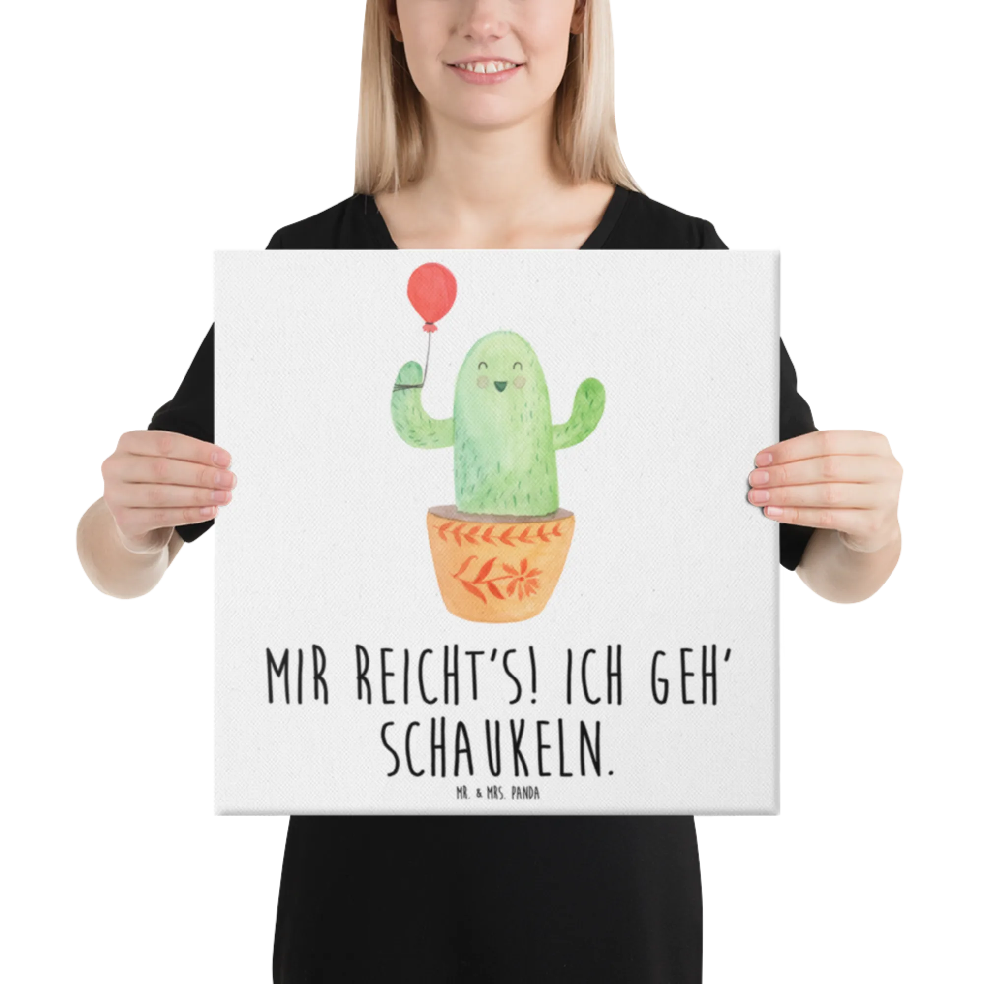 Leinwand Bild Kaktus Luftballon - mit Spruch