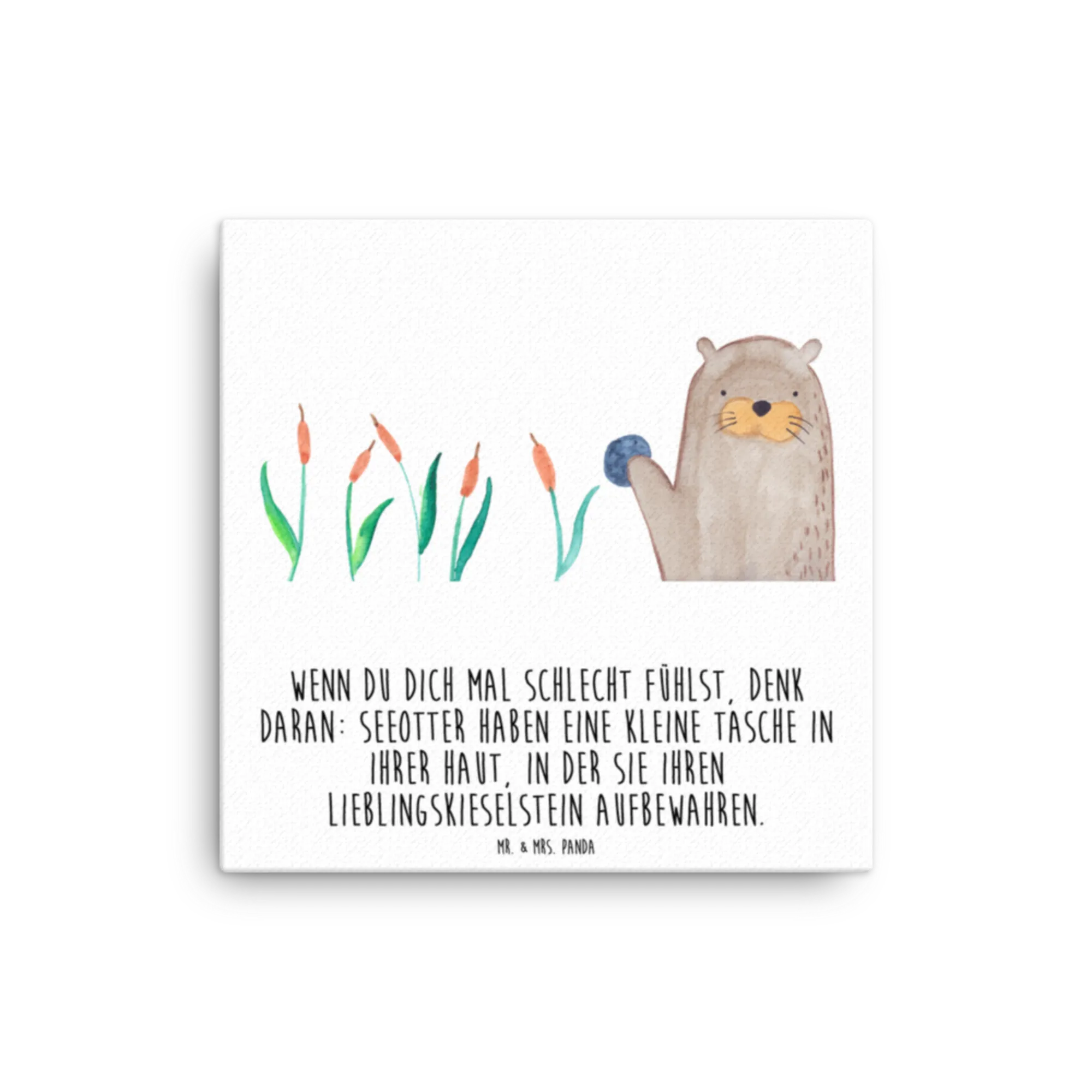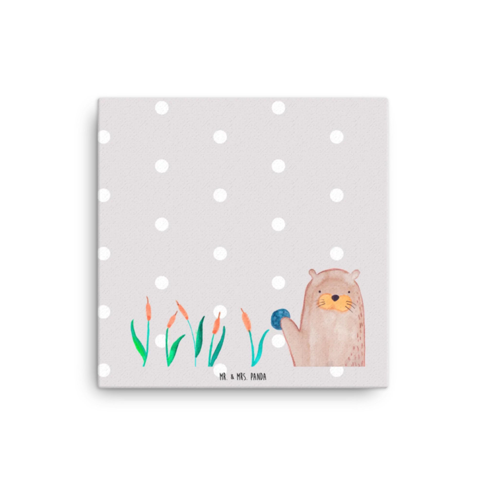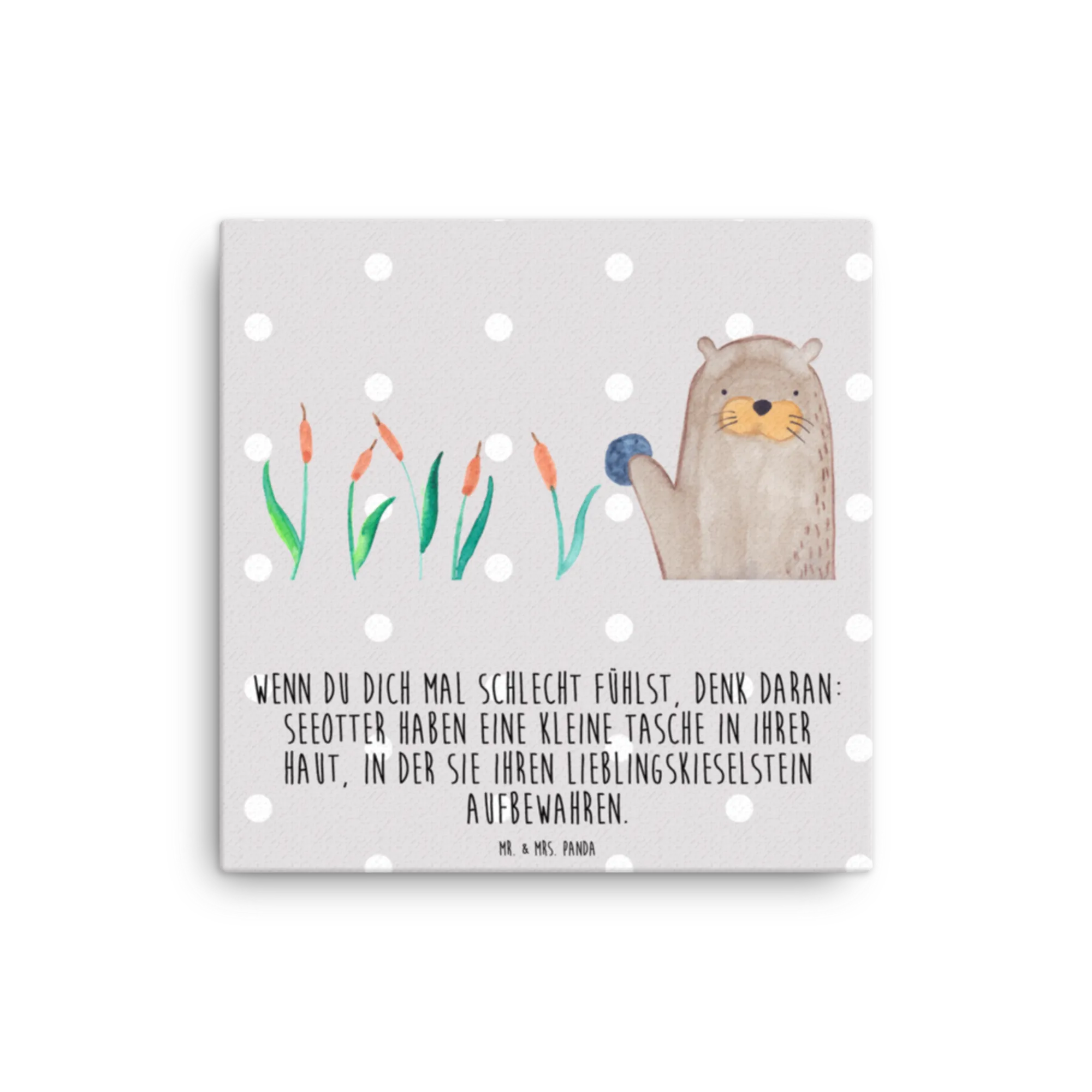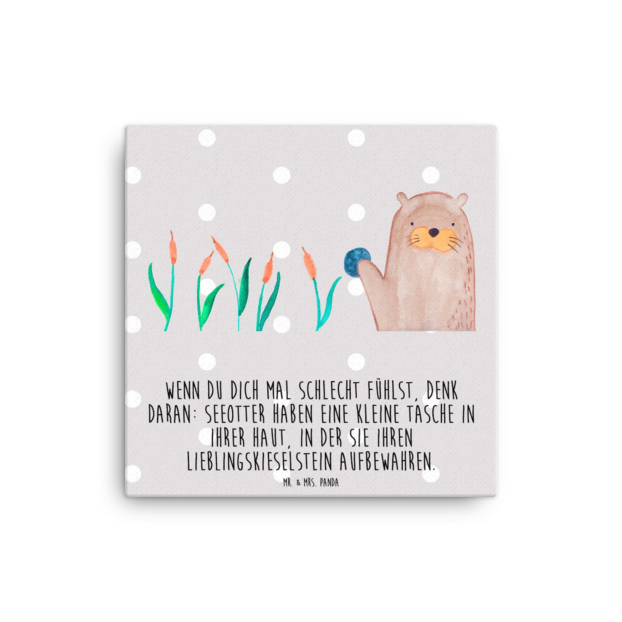 Leinwand Bild Otter mit Stein - 40 x 40 cm - mit Spruch - Grau Pastell