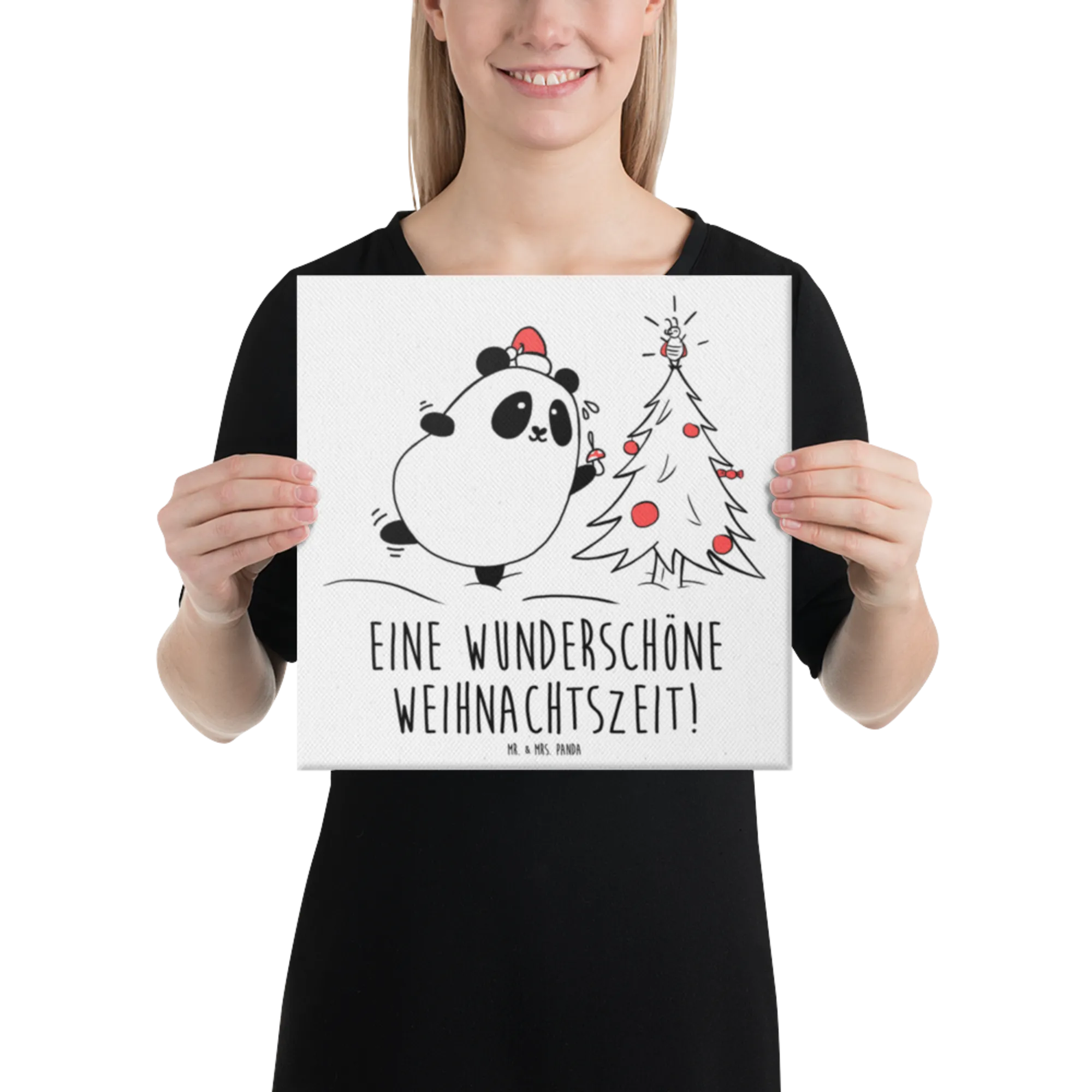 Leinwand Bild Panda Weihnachtszeit - 40 x 40 cm