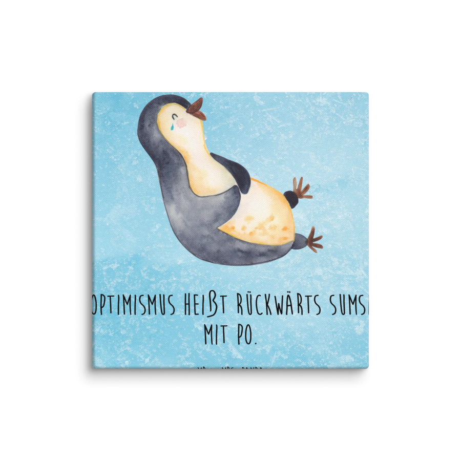Leinwand Bild Pinguin lachend - mit Spruch - Eisblau