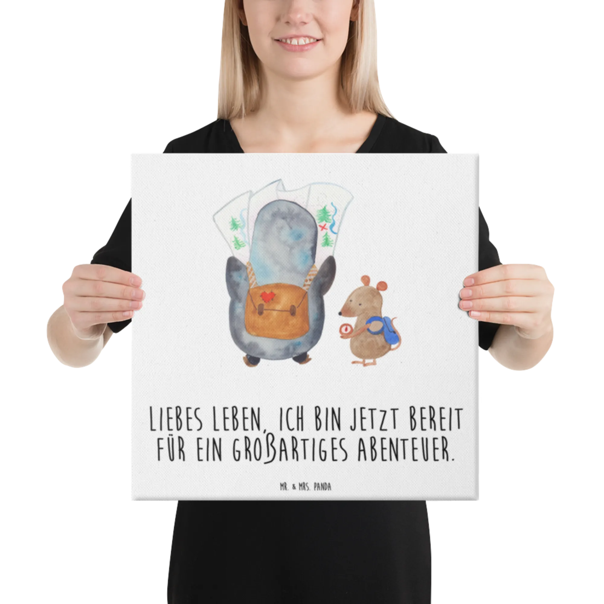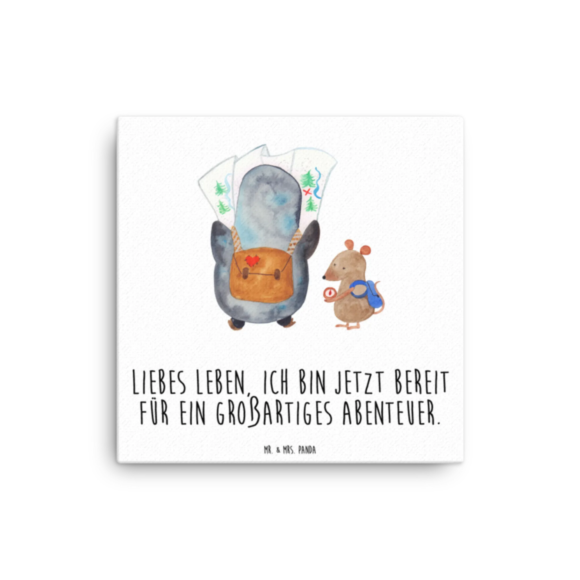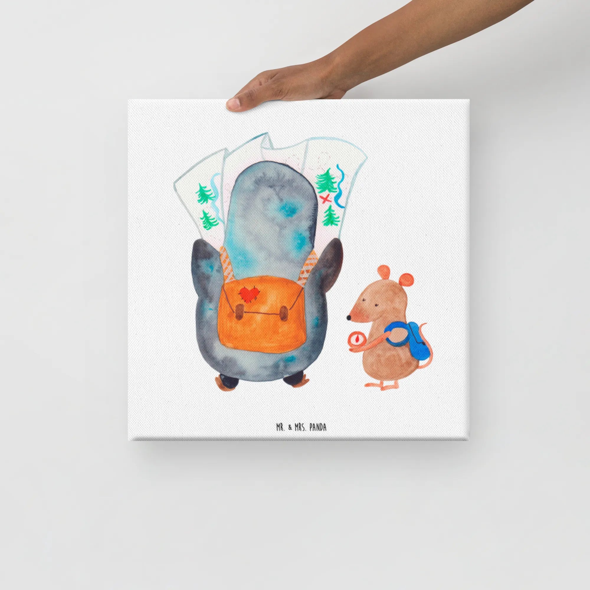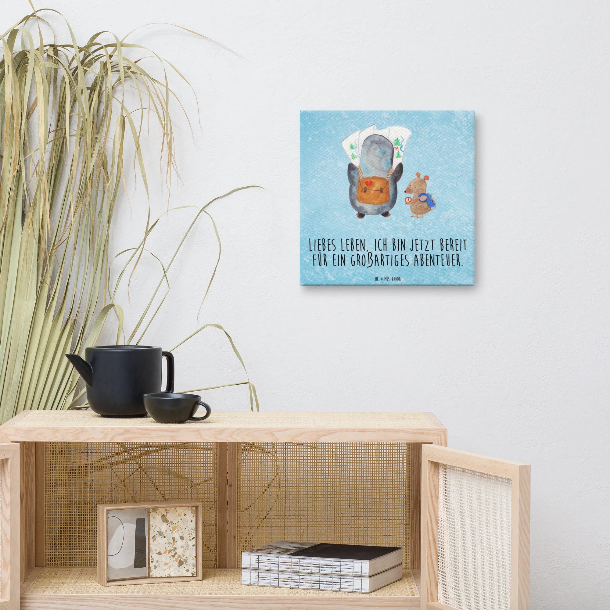 Leinwand Bild Pinguin & Maus Wanderer - 40 x 40 cm - mit Spruch - Eisblau