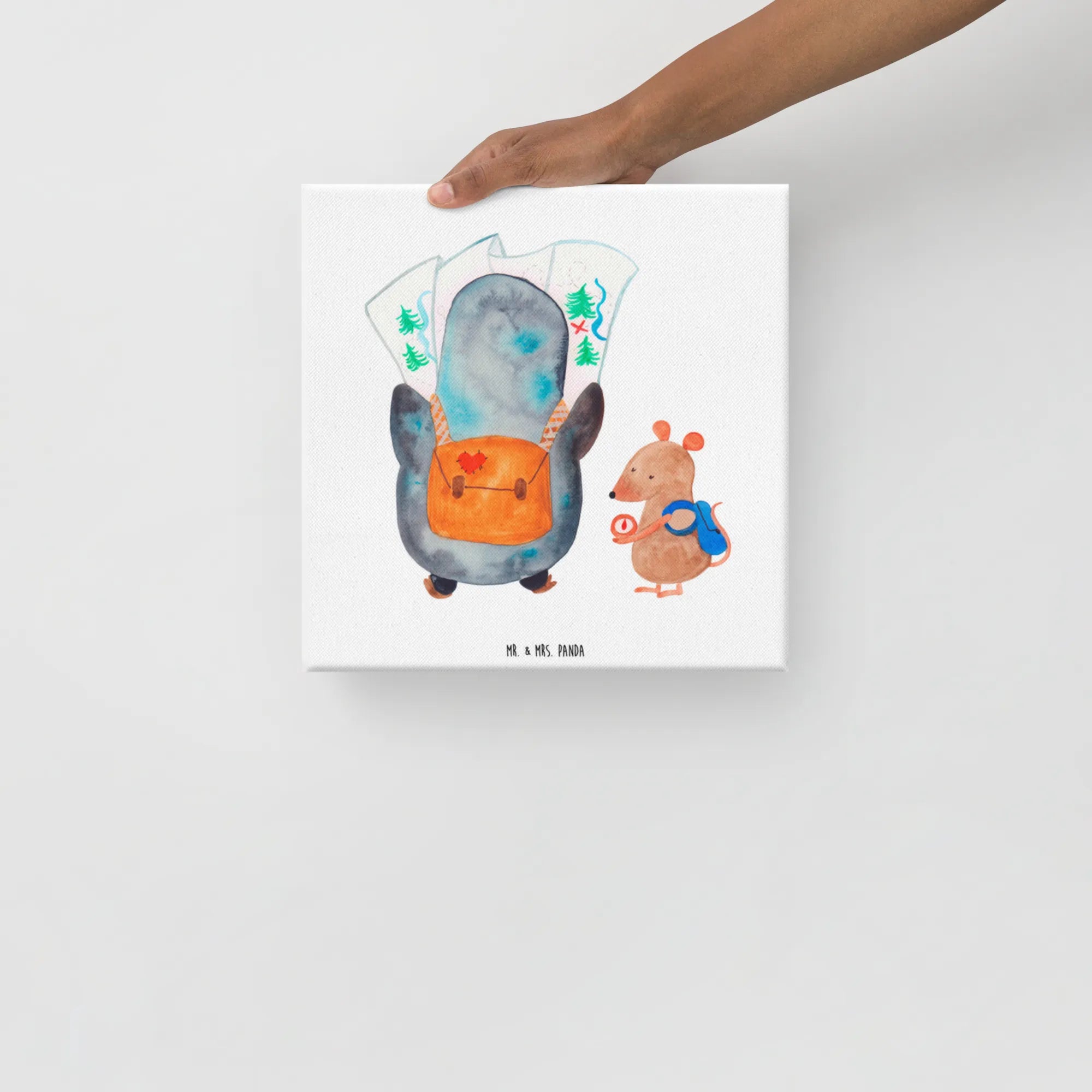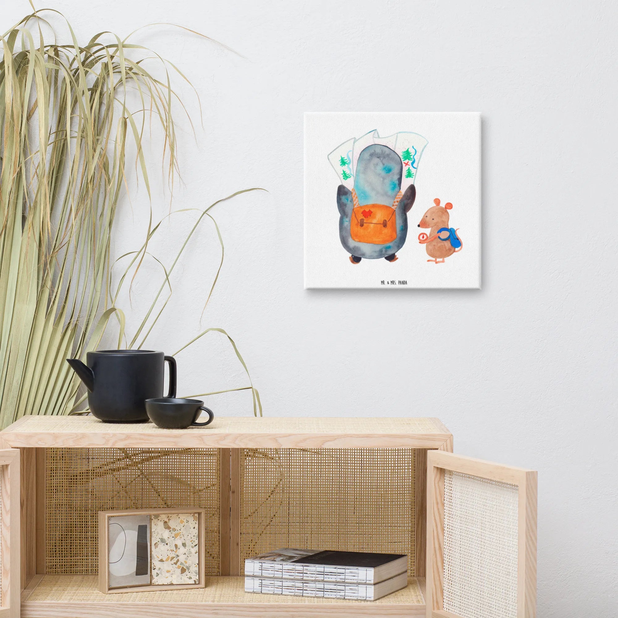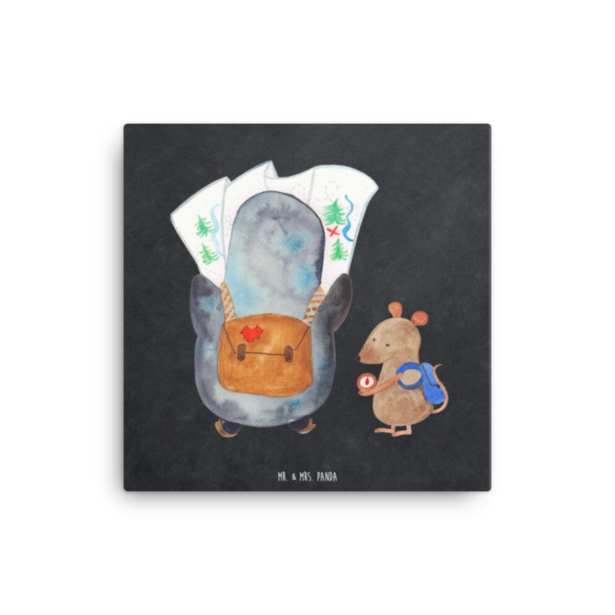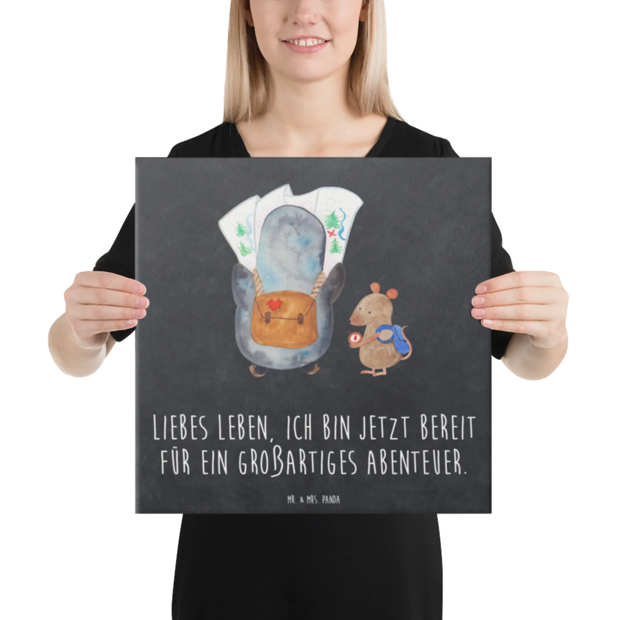 Leinwand Bild Pinguin & Maus Wanderer - 40 x 40 cm - mit Spruch - Eisblau