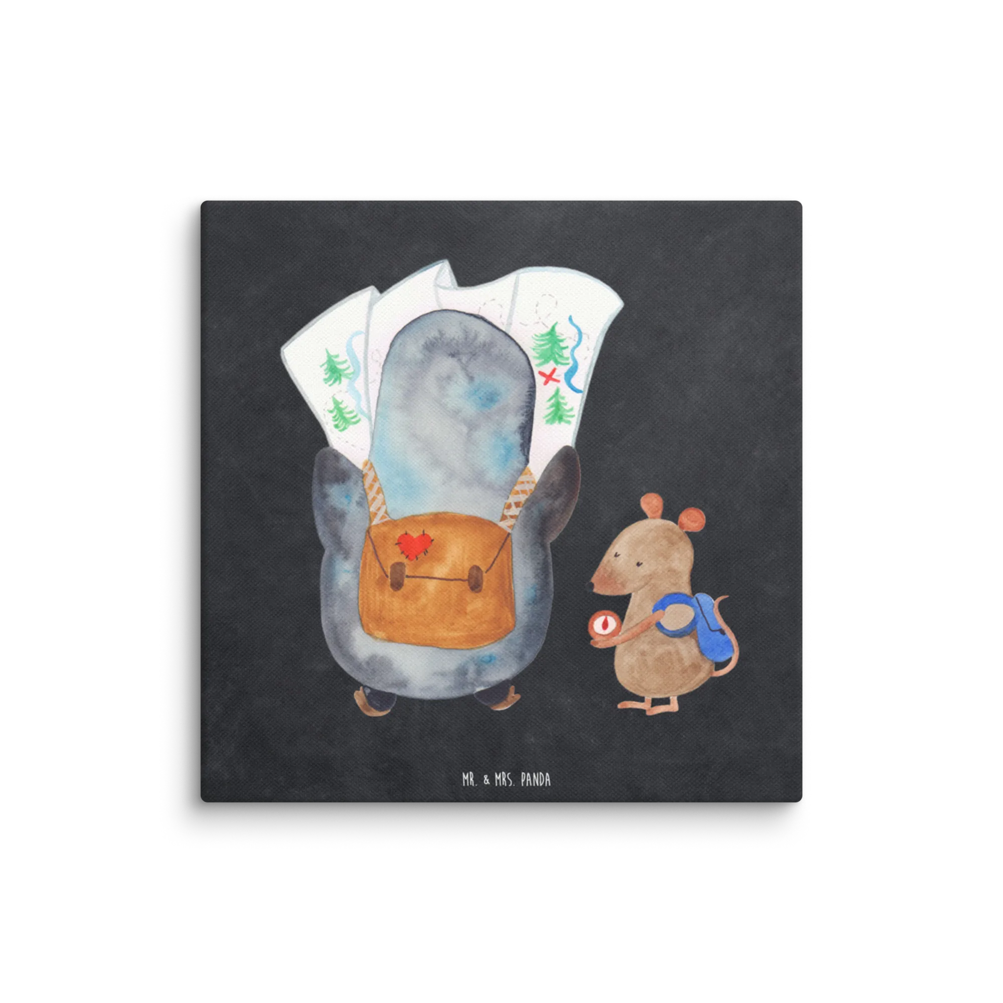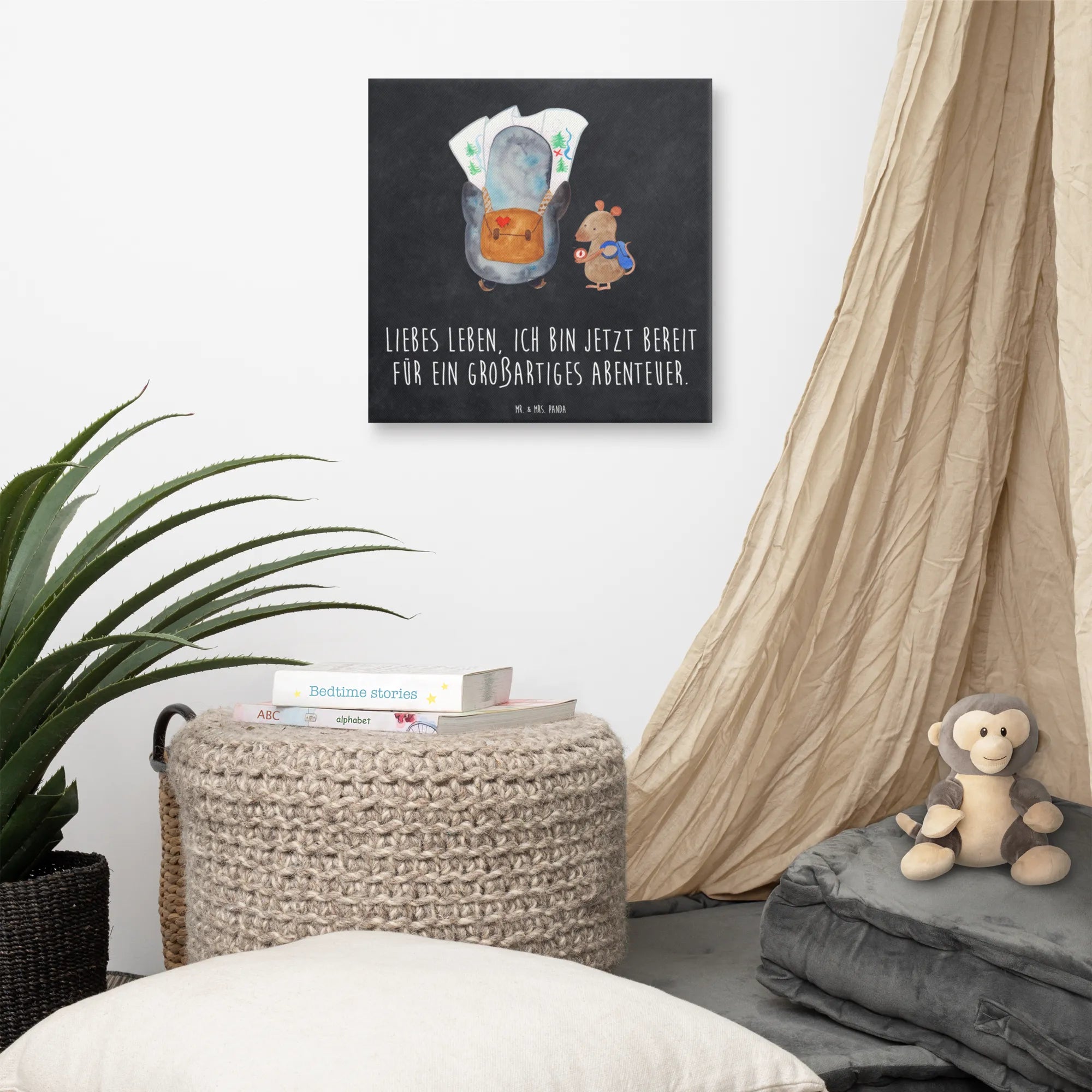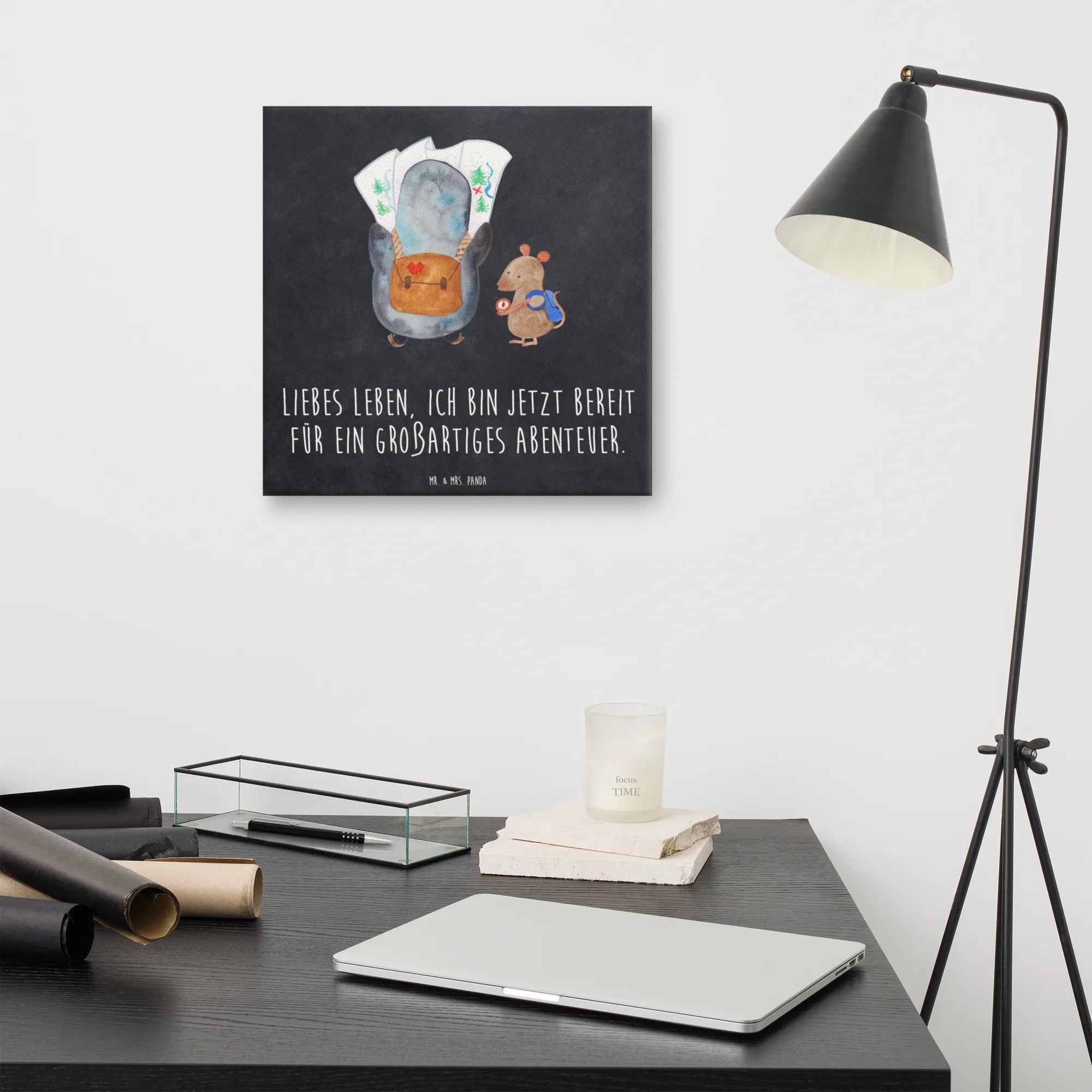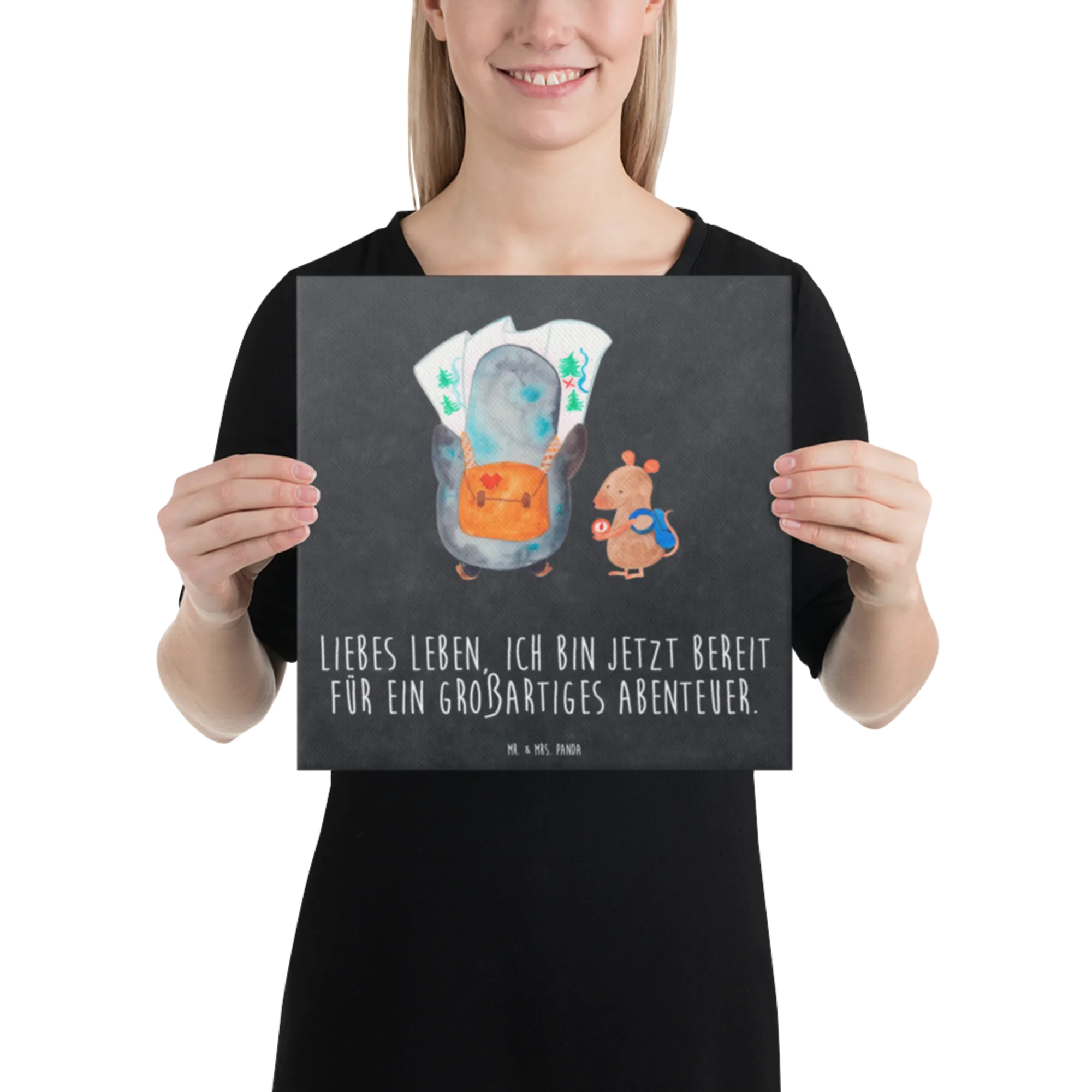 Leinwand Bild Pinguin & Maus Wanderer - 40 x 40 cm - mit Spruch - Eisblau