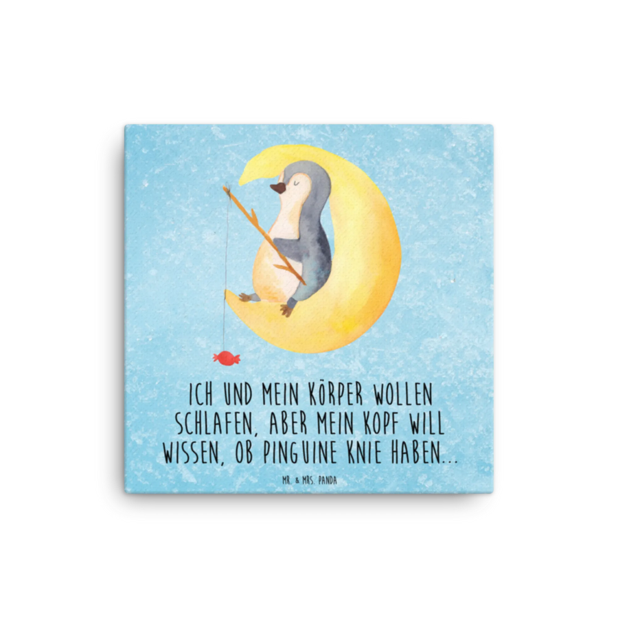 Leinwand Bild Pinguin Mond - 40 x 40 cm - mit Spruch - Eisblau