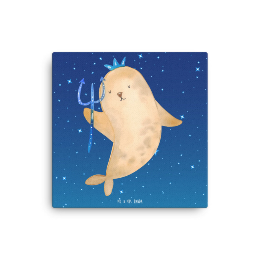 Leinwand Bild Sternzeichen Wassermann – ein liebevoller Kunstdruck von Mr. & Mrs. Panda, der mit seiner handgezeichneten Robbe, Krone und dem Zepter ein Lächeln auf jedes Gesicht zaubert. Diese fröhliche Illustration fängt den Charakter des Wassermanns ein: kreativ, hilfsbereit und ein bisschen überraschend.