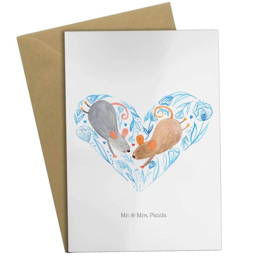 Die Grußkarte "Mäuse Herz" aus der Kollektion Liebe von Mr. & Mrs. Panda ist das perfekte Geschenk für alle, die das Besondere lieben! Egal ob für den Freund, die Freundin oder den Ehepartner, mit dieser liebevoll gestalteten Karte kannst du deine innigsten Gefühle auf eine besonders süße Art zum Ausdruck bringen. Die Karte zeigt zwei zauberhafte Mäuse, die mit ihren Körpern ein Herz bilden. In sanften Aquarellfarben gehalten, strahlen die Mäuse eine gewisse Wärme und Zuneigung aus, die jeden Beschenkten verzaubern wird.