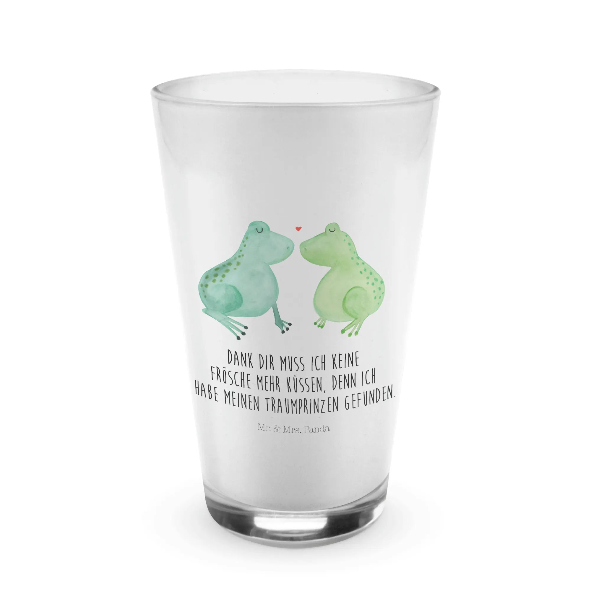 Das wunderschöne Cappuccino-Glas von Mr. & Mrs. Panda ist nicht nur ein weiterer Trinkbehälter, sondern ein ausgefallenes Liebesgeschenk, das Deine Herzen höher schlagen lässt. Mit dem zauberhaften Motiv der verliebten Frösche bringt dieses Glas eine wunderbare Botschaft rüber: "Dank dir muss ich keine Frösche mehr Küssen, denn ich habe meinen Traumprinzen gefunden!" Diese liebevolle Botschaft macht das Glas zum perfekten Geschenk für Deinen Freund oder Deine Freundin, zur Verlobung oder einfach um Deine Liebe zu zeigen.