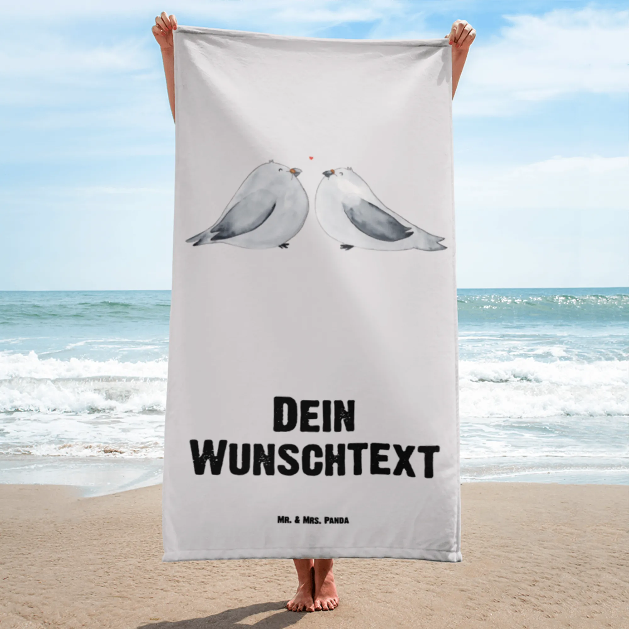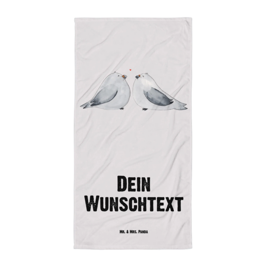 XXL Badehandtuch mit Namen Turteltauben Liebe – Mr. & Mrs. Panda