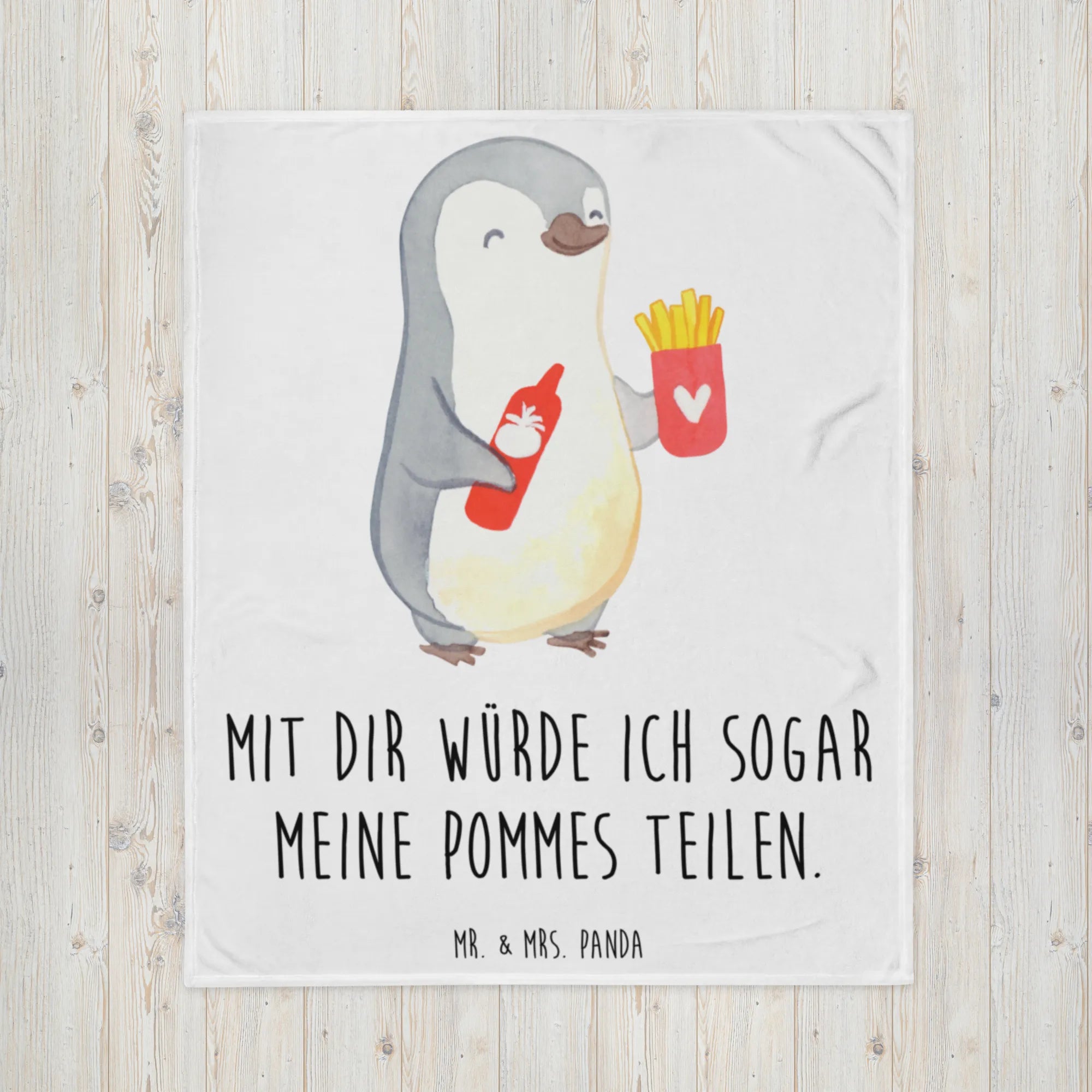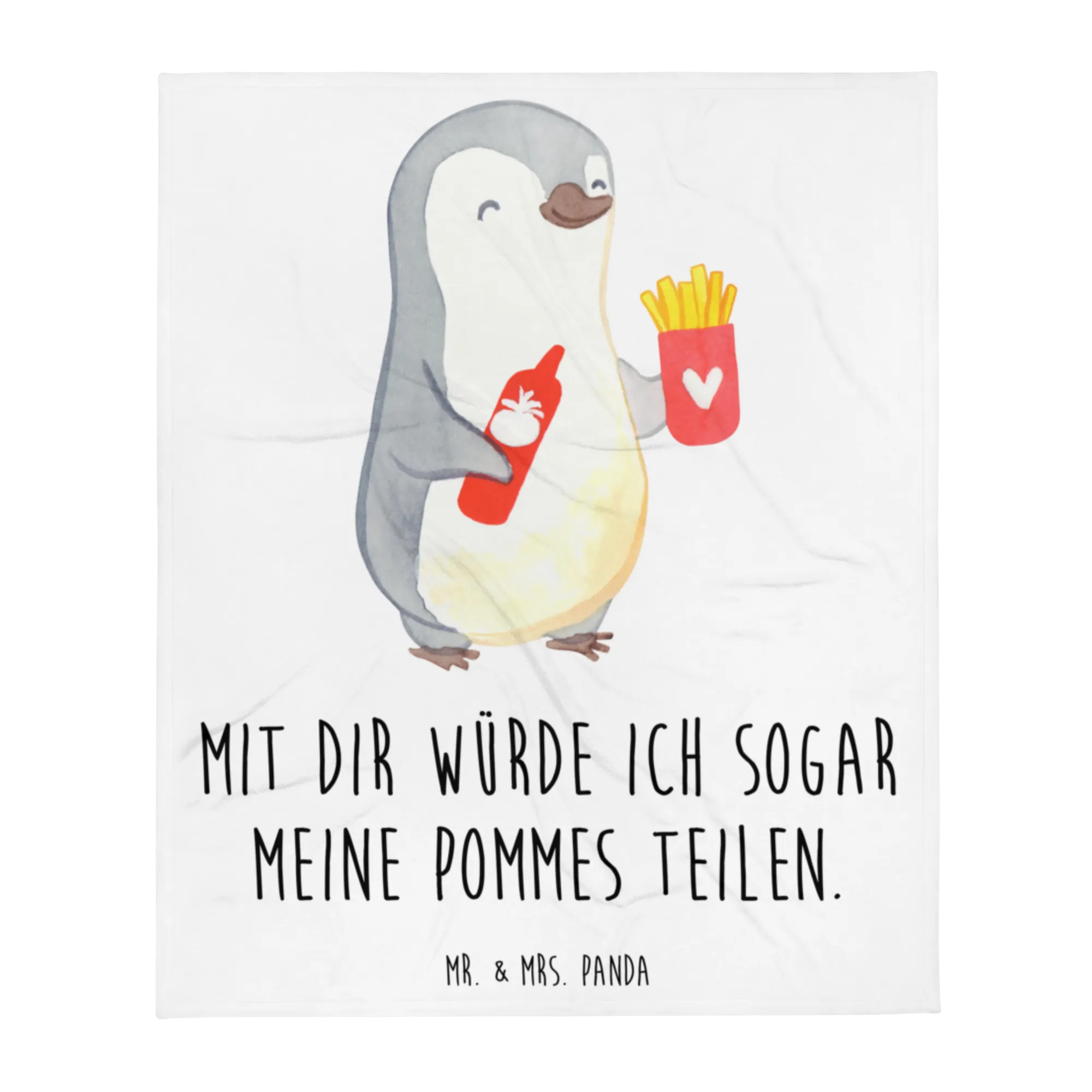 Die Kuscheldecke Pinguin Pommes von Mr. & Mrs. Panda ist das perfekte Geschenk für deine Liebsten, egal ob zum Valentinstag, Jahrestag oder einfach nur so, um jemandem ein Lächeln ins Gesicht zu zaubern. Diese hochwertige und wunderschöne Kuscheldecke ist nicht nur super gemütlich, sondern auch mit einem liebevoll gestalteten Pinguin-Motiv mit dem Spruch „Mit dir würde ich sogar meine Pommes teilen“ bedruckt.
