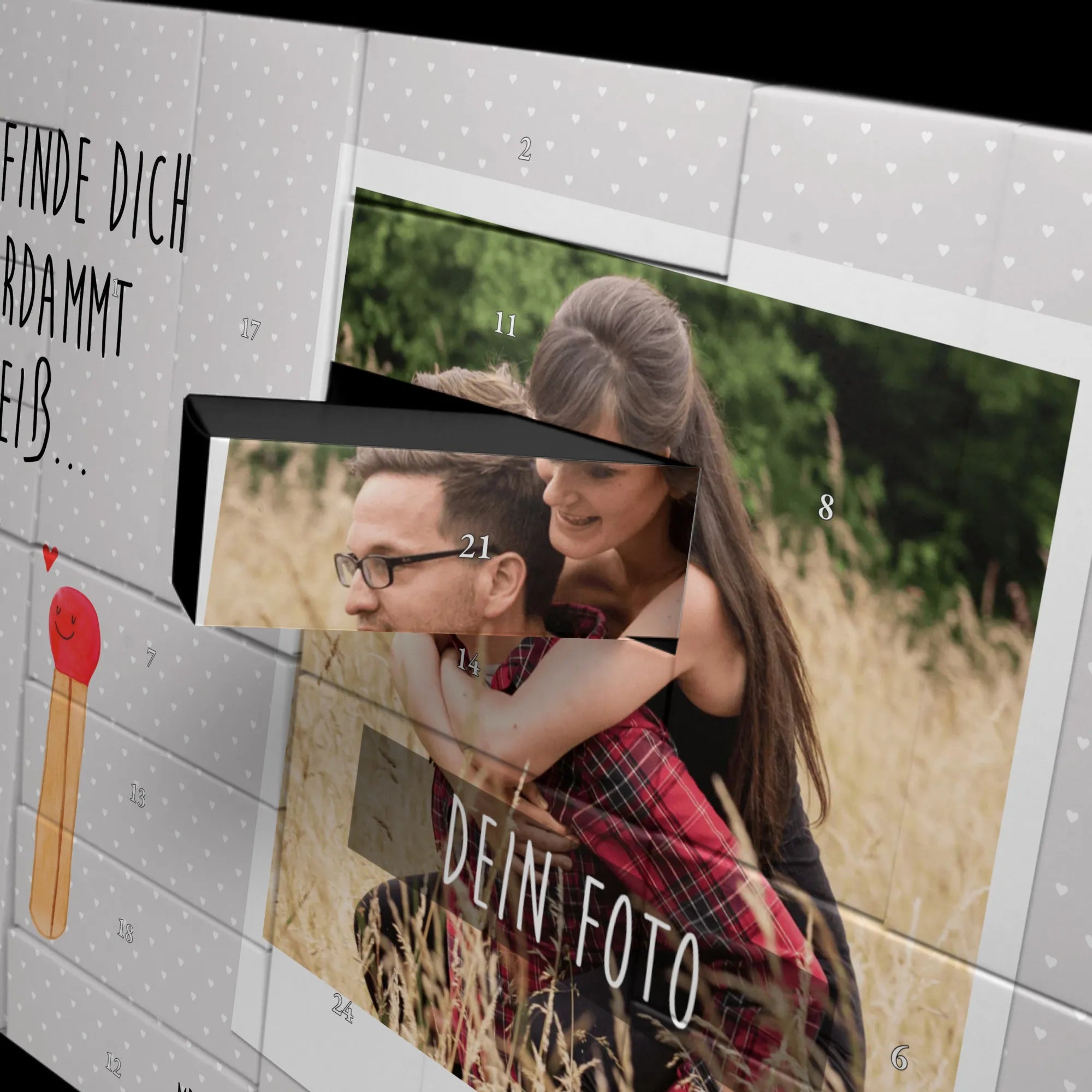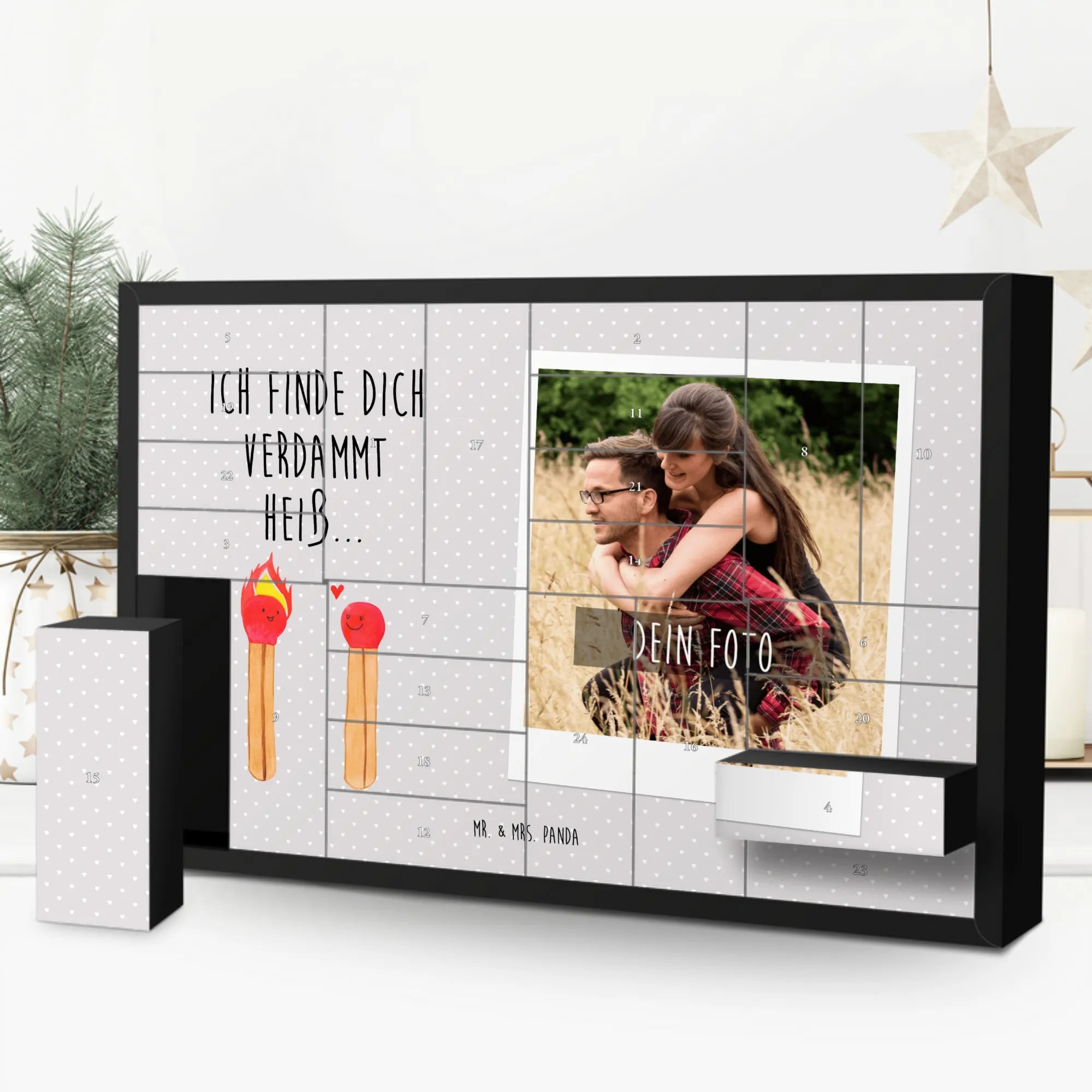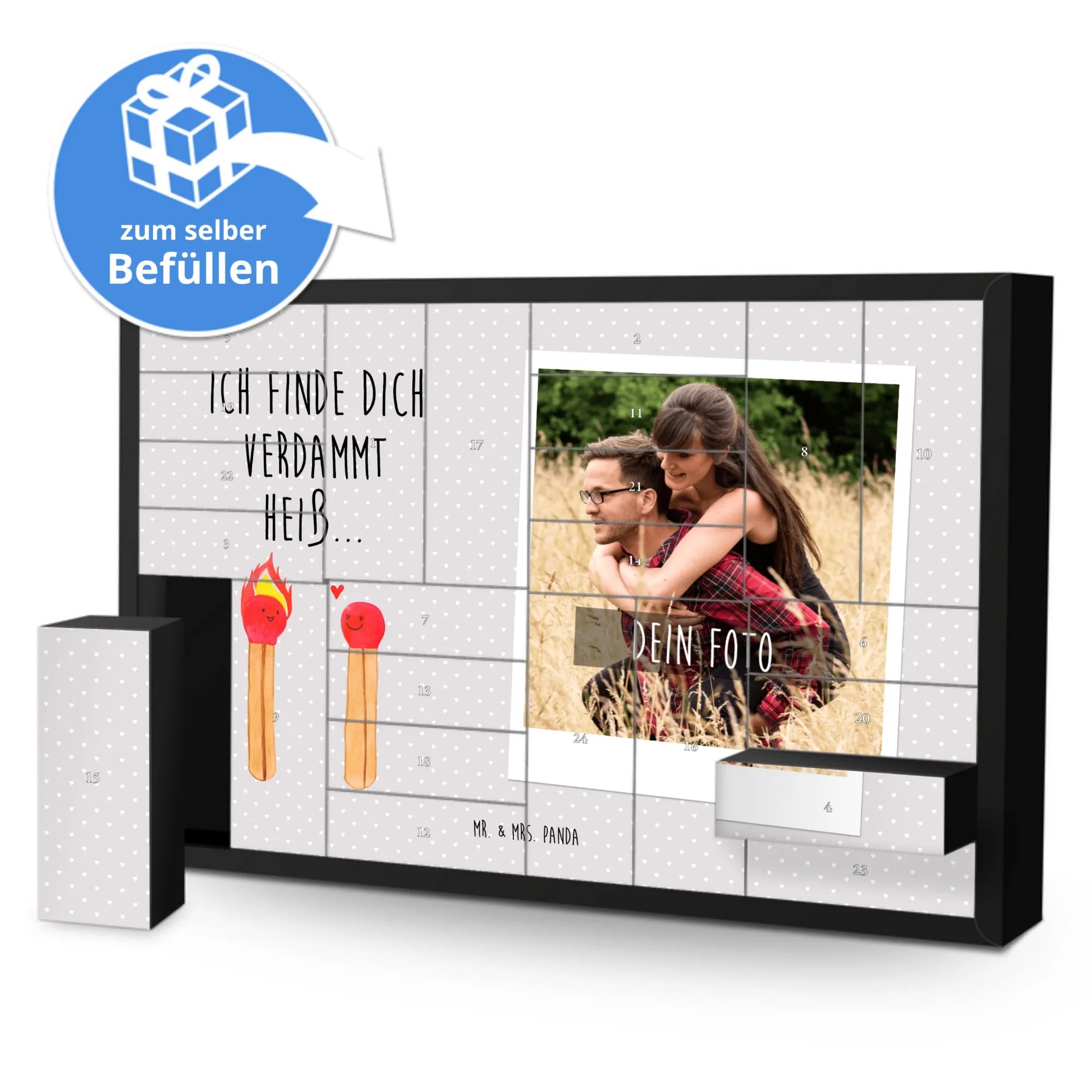 Der personalisierte befüllbare Foto Adventskalender von Mr. & Mrs. Panda ist das perfekte Geschenk für alle Liebenden und Verliebte. Mit seinem einzigartigen Motiv der Streichhölzer und dem liebevollen Slogan "Ich finde dich verdammt heiß..." zaubert dieser Kalender jedem ein Lächeln ins Gesicht. Das Herz schlägt höher, denn dieser Adventskalender ist mehr als nur ein schöner Brauch – er ist ein Ausdruck deiner Liebe und Zuneigung.