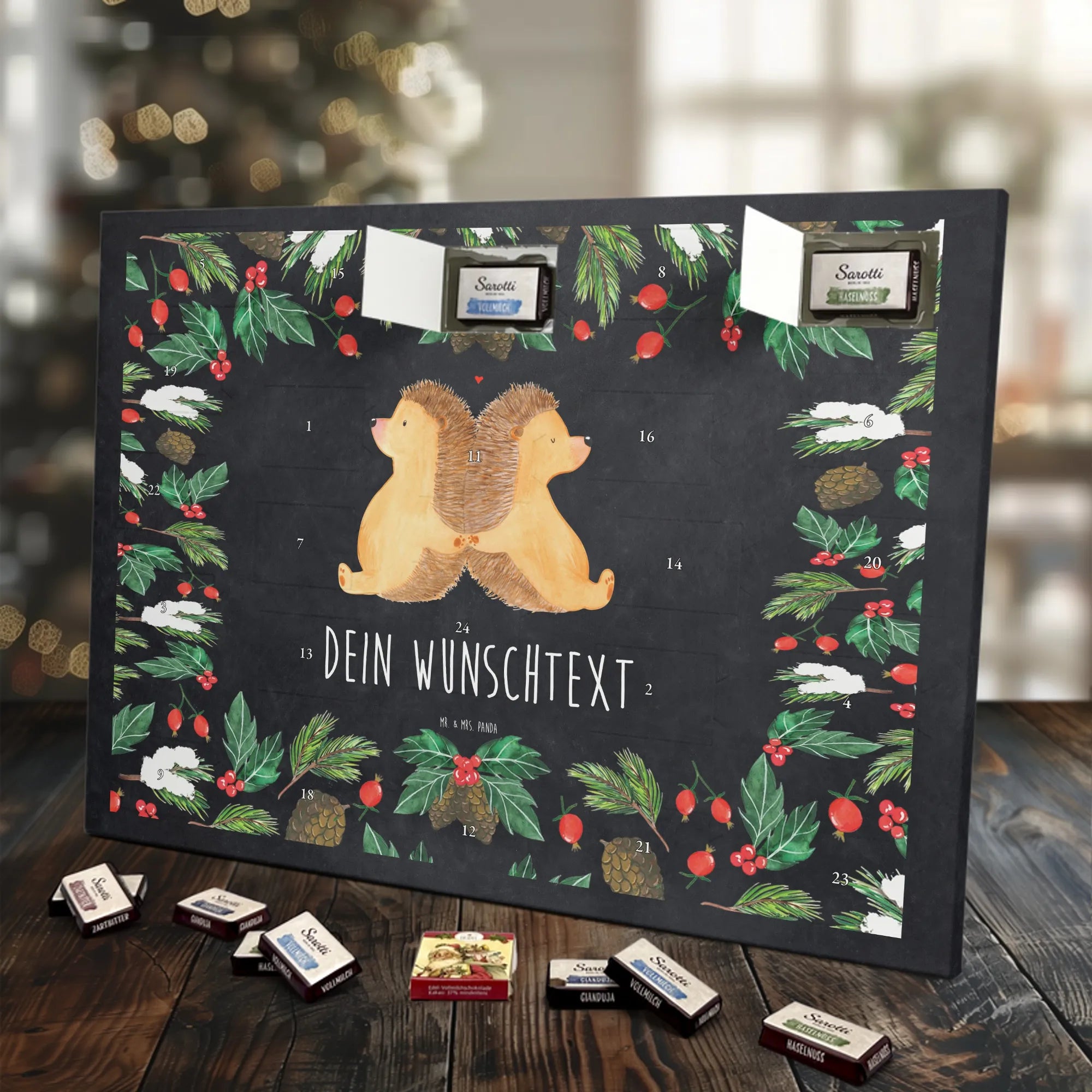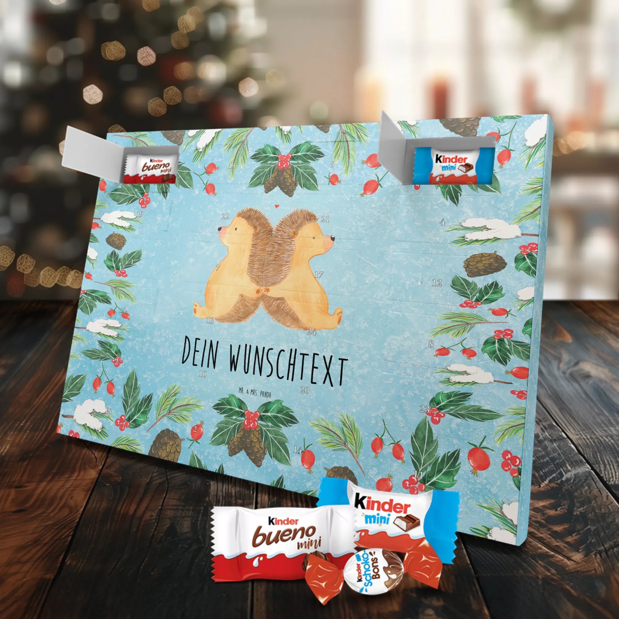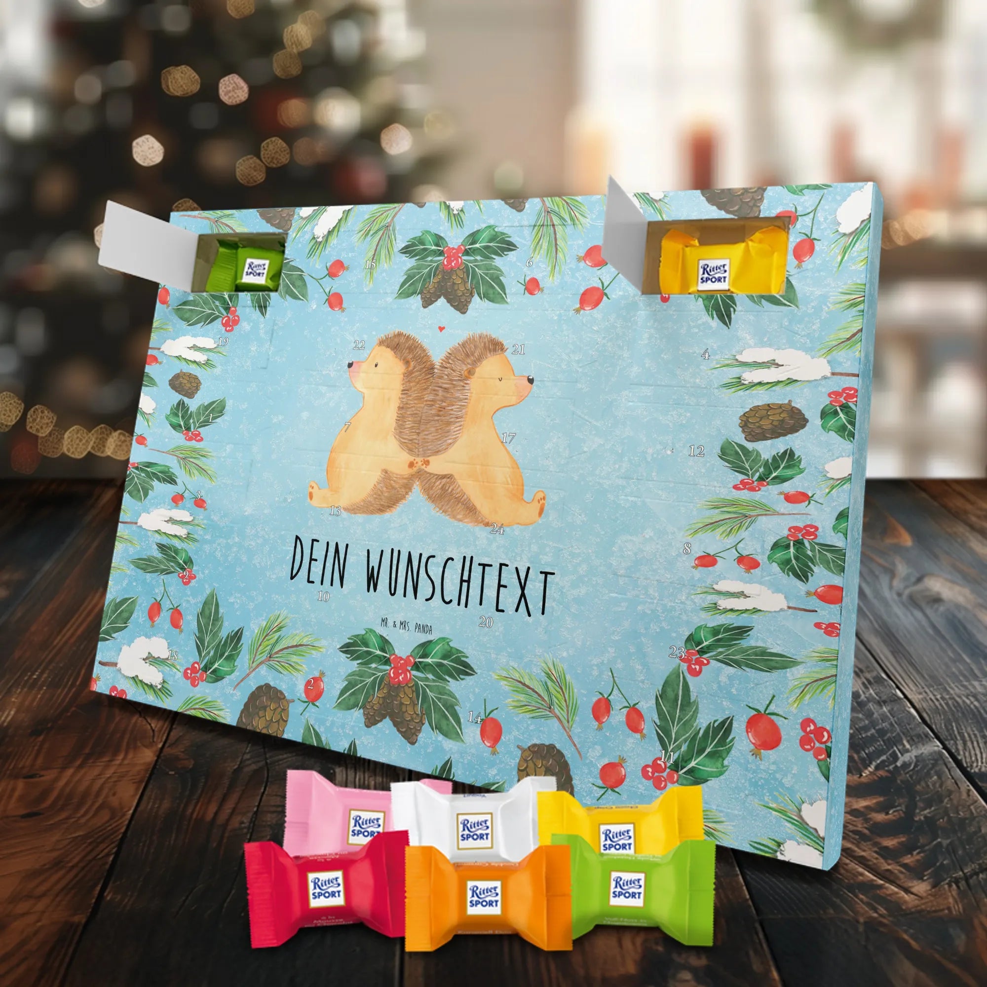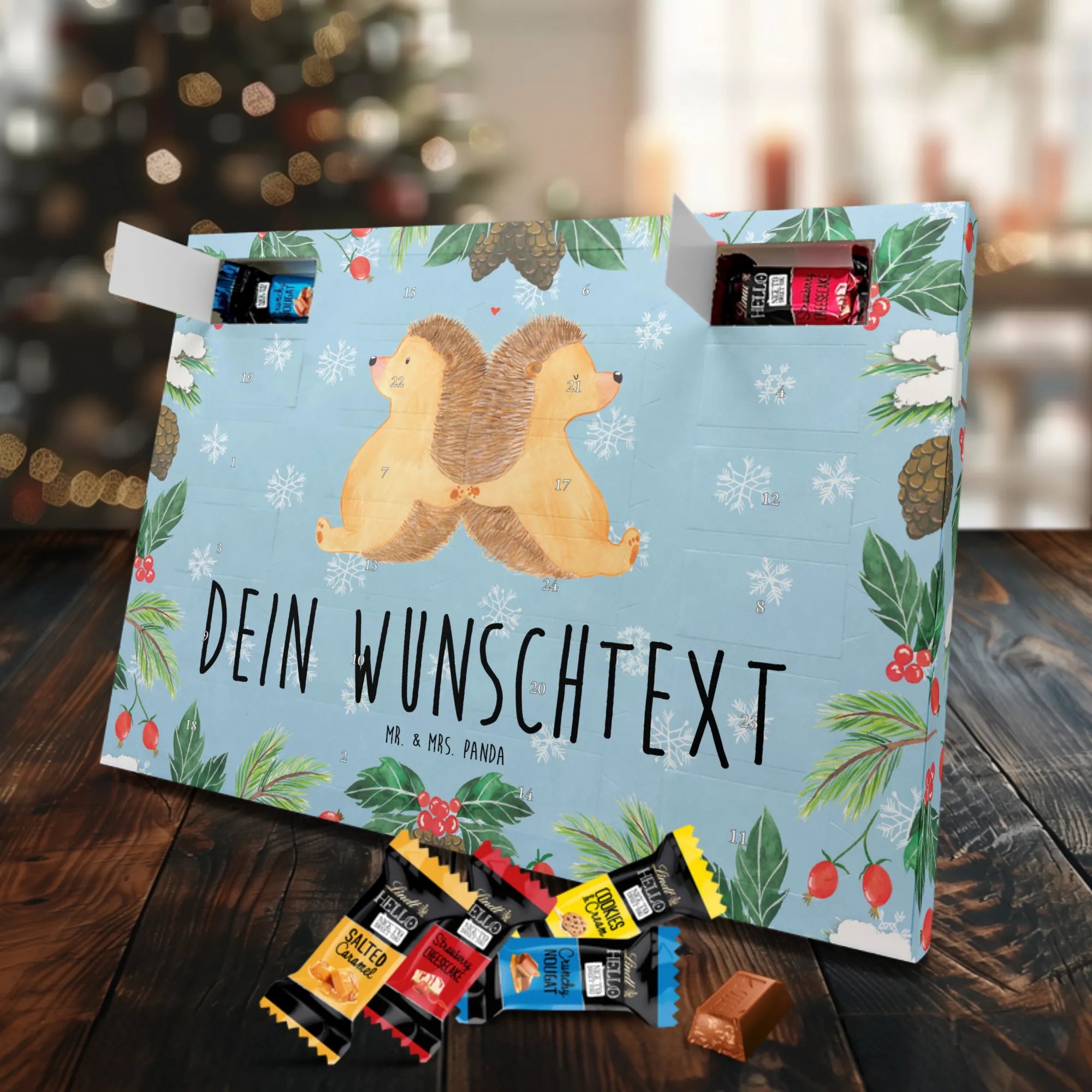 Personalisierter Schoko Adventskalender „Igel händchenhaltend“ – aus der liebevollen Liebe-Kollektion von Mr. & Mrs. Panda. Dieses niedliche Motiv zeigt zwei Igel, die Händchen halten, und vermittelt Wärme, Nähe und gemeinsame Abenteuer. Ideal als Adventskalender mit Namen für Paare, Freundin, Freund oder den Lieblingsmenschen. 💕