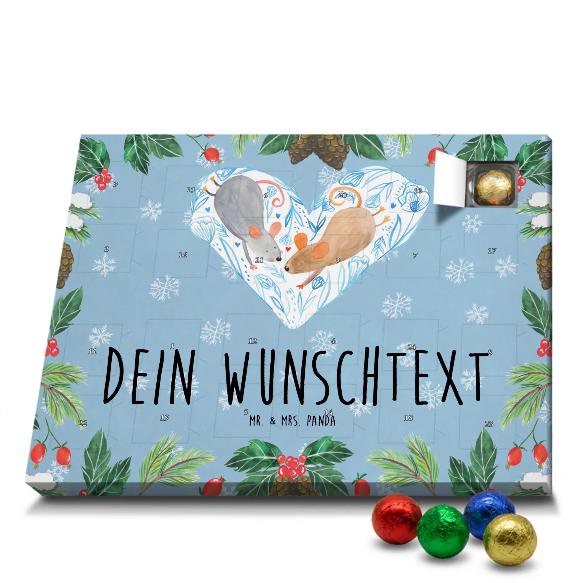 Adventskalender mit Namen Mäuse Herz - Classic - Eisblau
